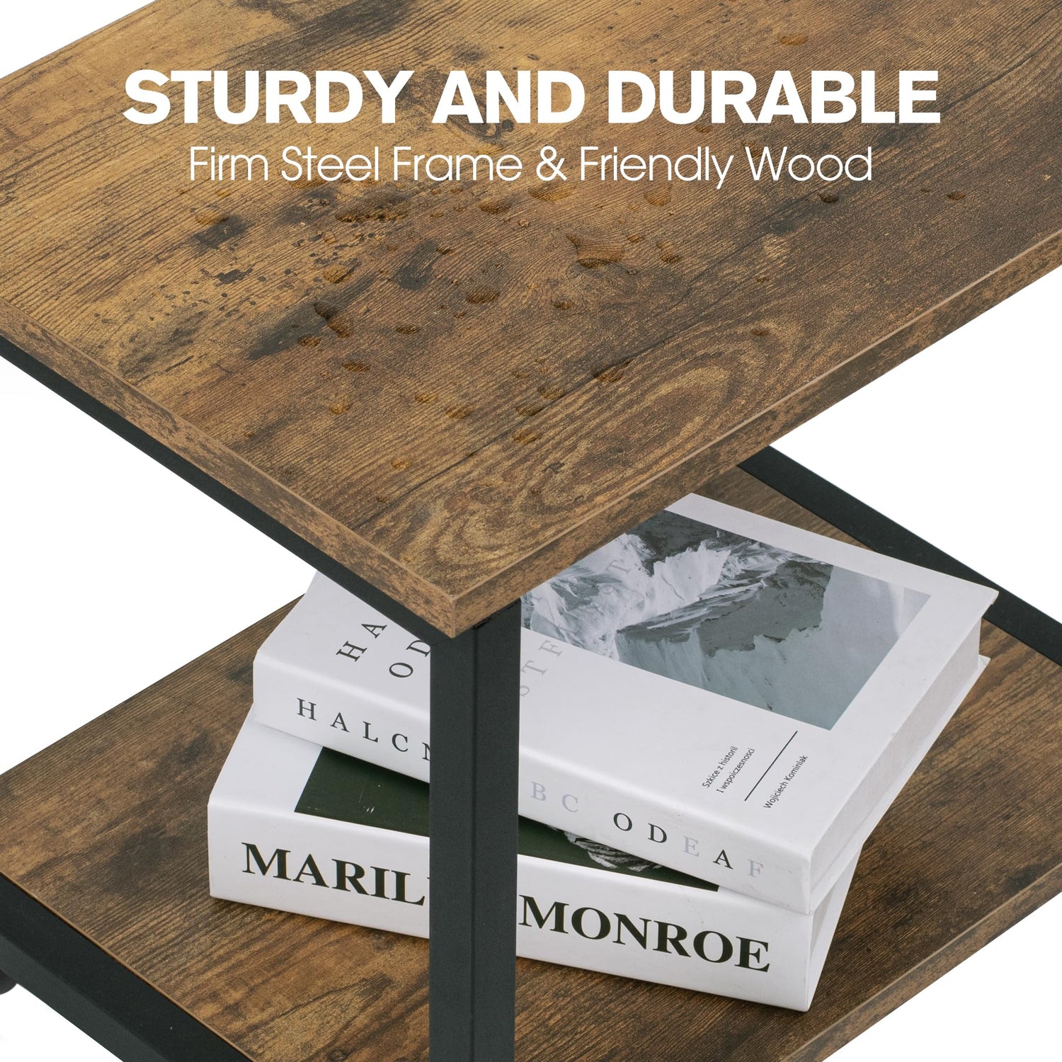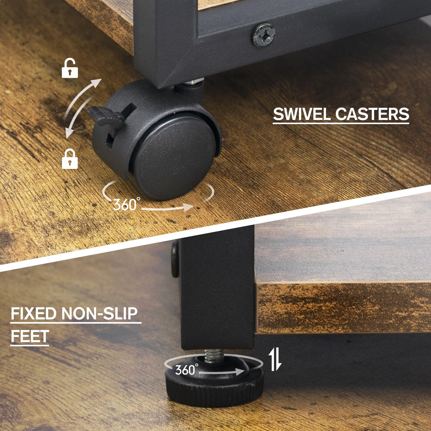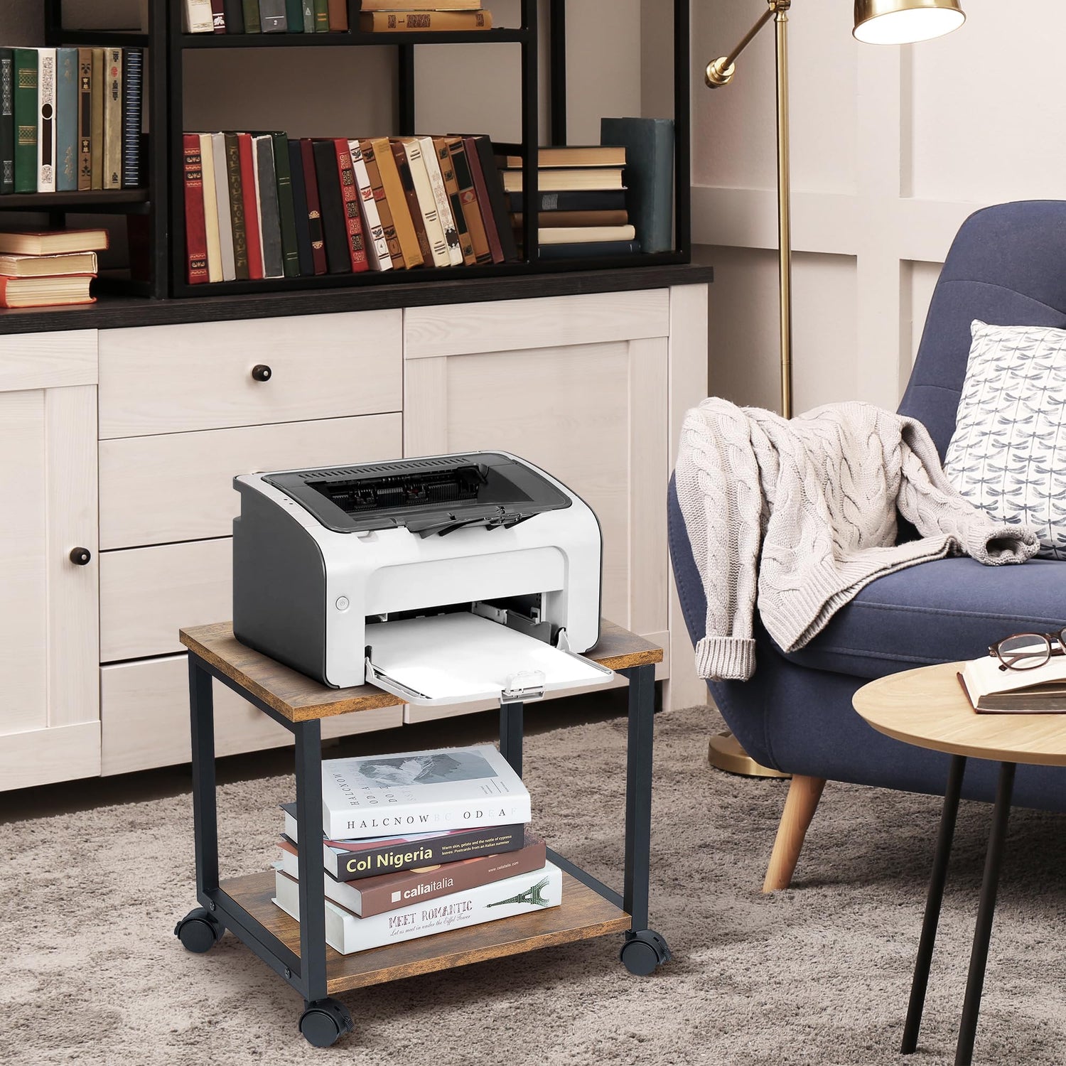Cakokow Under Desk Printer Stand - 2-Tier Industrial Mobile Printer Table with Storage Shelf, Heavy Duty Wood Rolling Printer Cart with Wheels for Home and Office,Rustic Brown