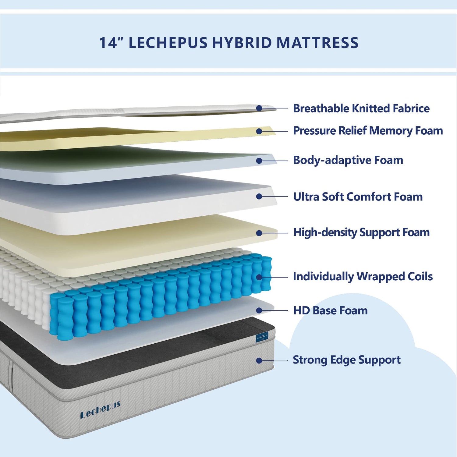 Cal King Mattress,Lechepus 14 Inch Hybrid Memory Foam Mattresses with Individual Pocket Springs,Mattress in Box,Plush Comfortable Mattress for Cool Sleep & Back Pain Relief,CertiPUR-US Certified