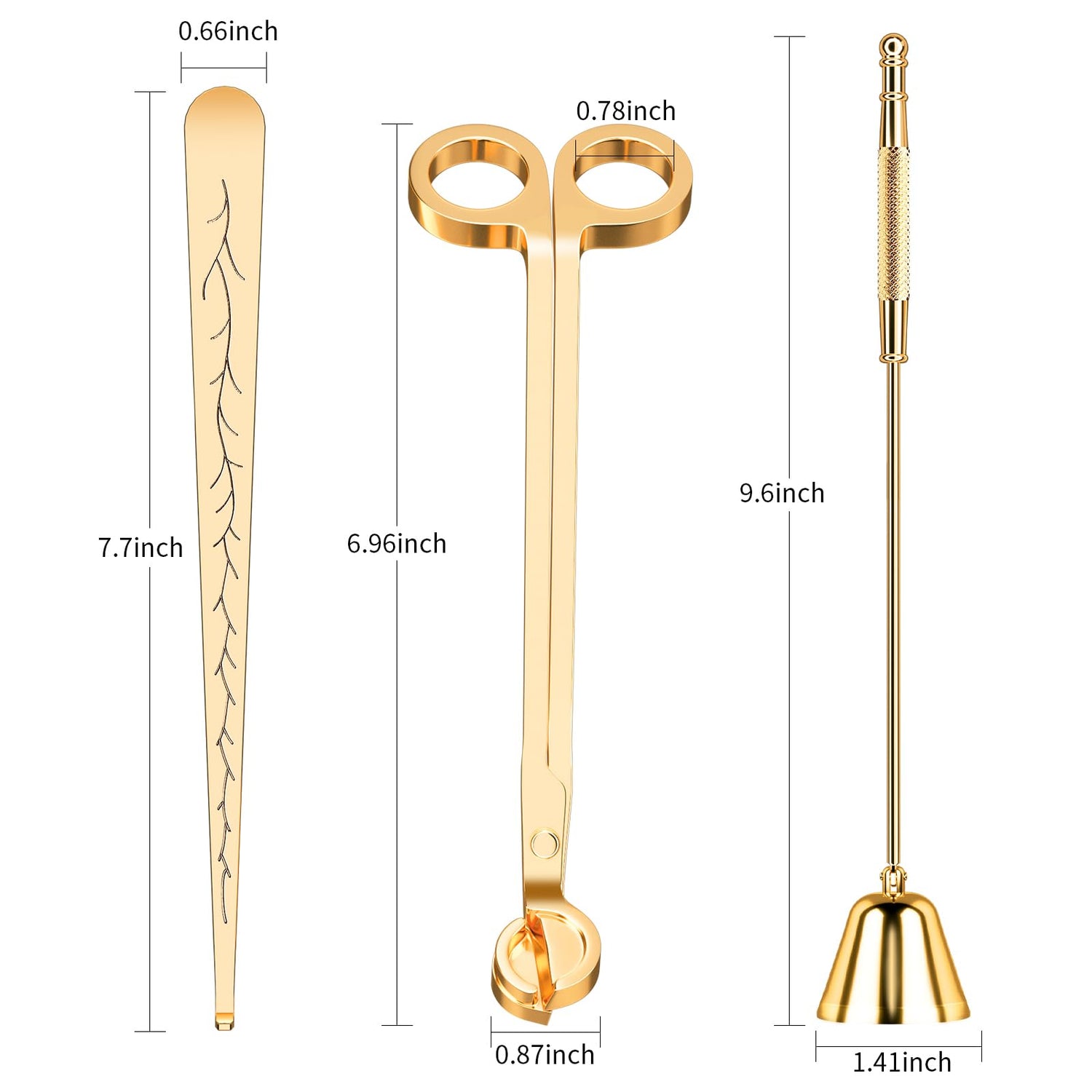 - Good For Home & Decor: Candle wick trimmer is a necessary accessory for home decoration cutting the wick after long use will prevent flickering champange gold smoke into your living room. Every candle-lover's favorite accessories -Utilitarian gift. Includes 3 stainless steel champange gold plated candle snuffers. It is the best gift to your family or friends.