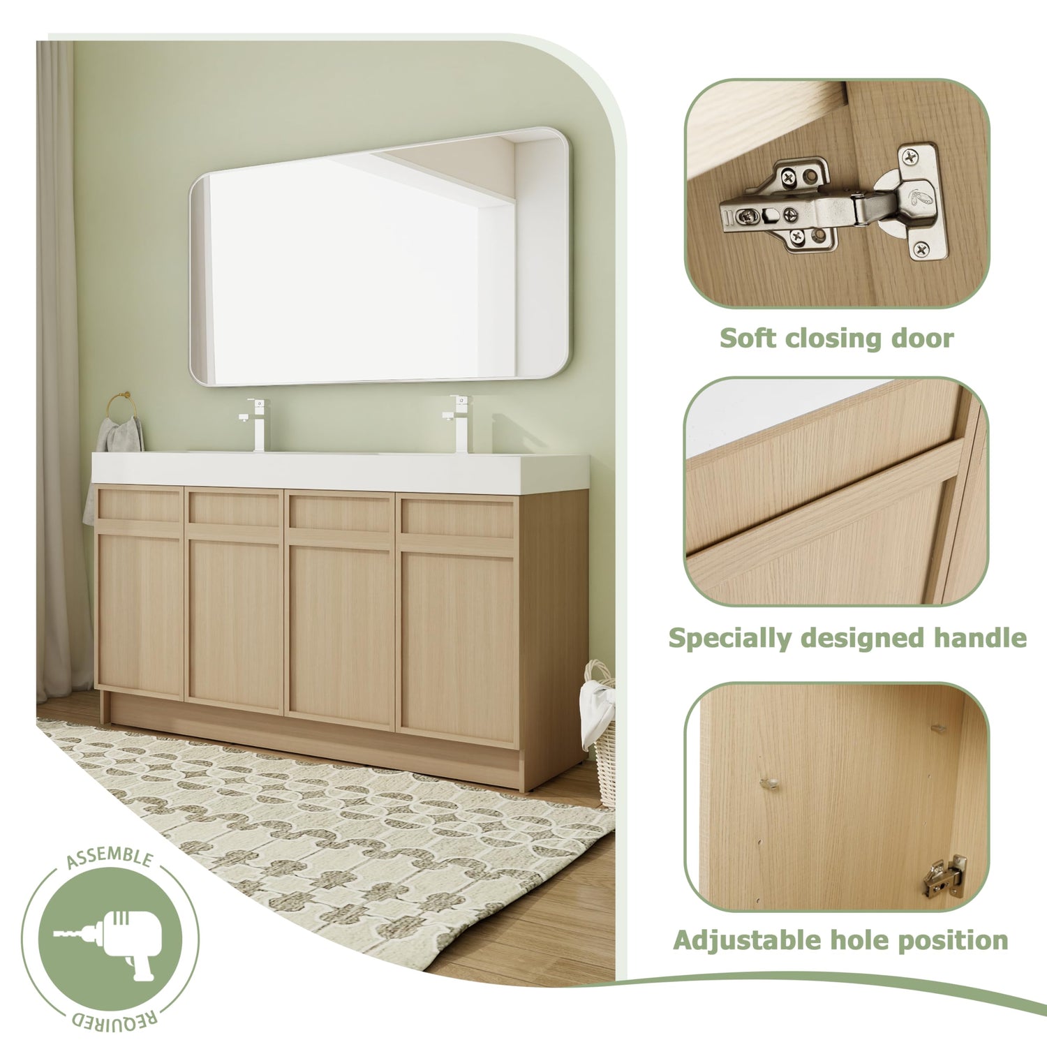 - HIGH-QUALITY SINK: This 60" Double Sinks Floor Stand Vanity Combo offers 2 A-grade quality sinks, durability, and modern appeal. Its smooth surface ensures effortless cleaning and lasting elegance. (Notice: Faucet and drain not included.)