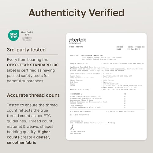 - Easy Care for Lasting Comfort: Every item with OEKO-TEX STANDARD 100 label is certified - passed safety tests for harmful substances. Durable high thread count sheets tested for pilling, fading, and shrinkage. Machine wash warm and tumble dry low; remove promptly to help reduce wrinkles.