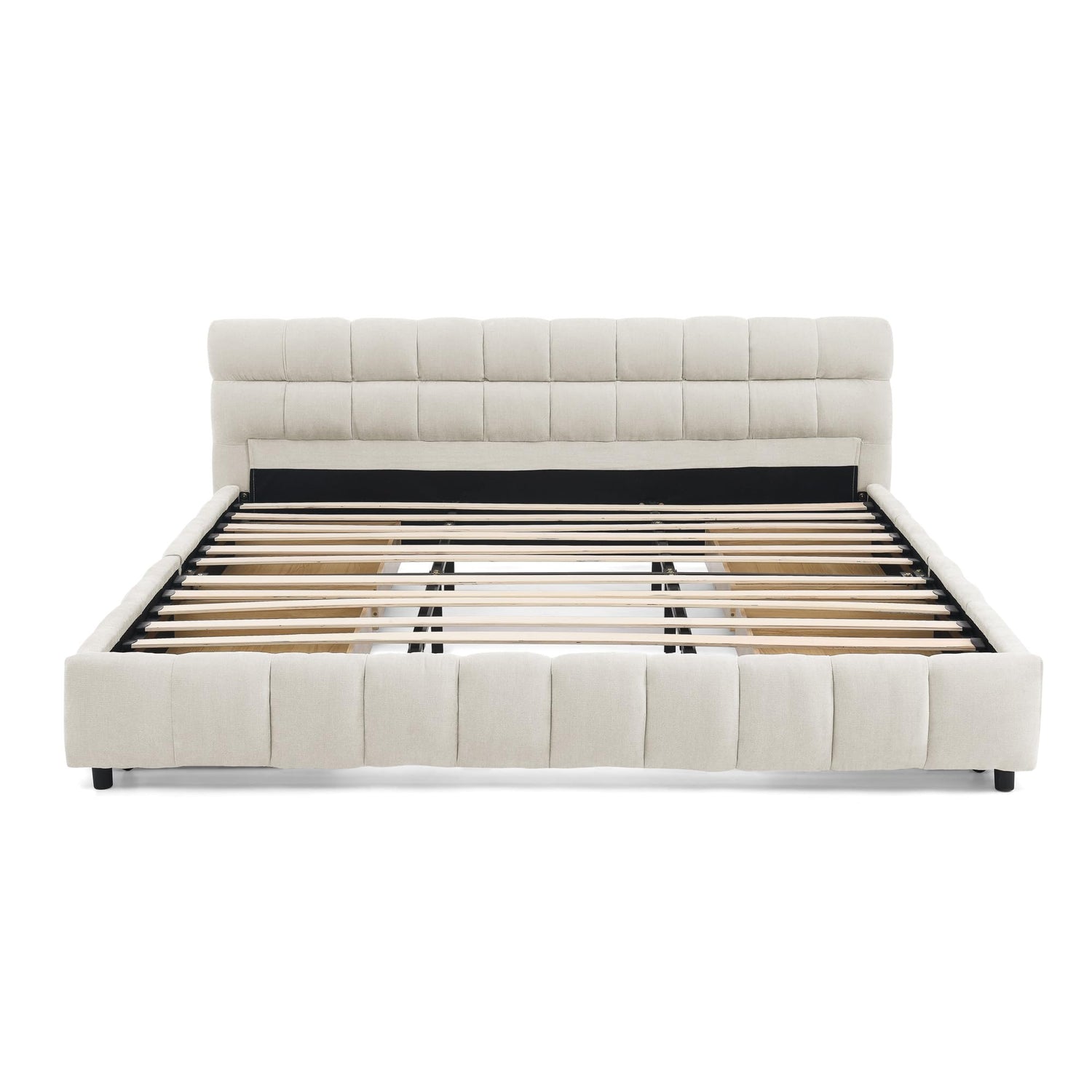 California King Cloud Bed Frame with Storage Drawers, Soft Padded Headboard Tufed Upholstered Low to Ground Floor Bed Marshmallow Bubble with Wood Slats No Box Spring Need, Noise-free(Beige Chenille)