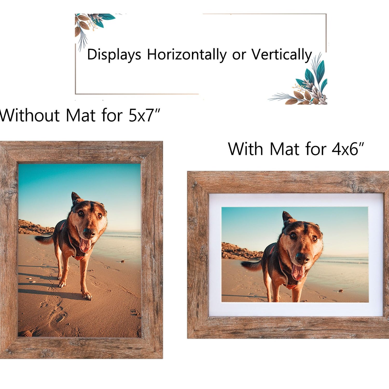 Califortree 5x7 Picture Frame - Can Display Photo 4x6 with Mat, Wood Frame with Shatterproof Plexiglass, Horizontal and Vertical Display for Wall and Tabletop, Rustic Brown