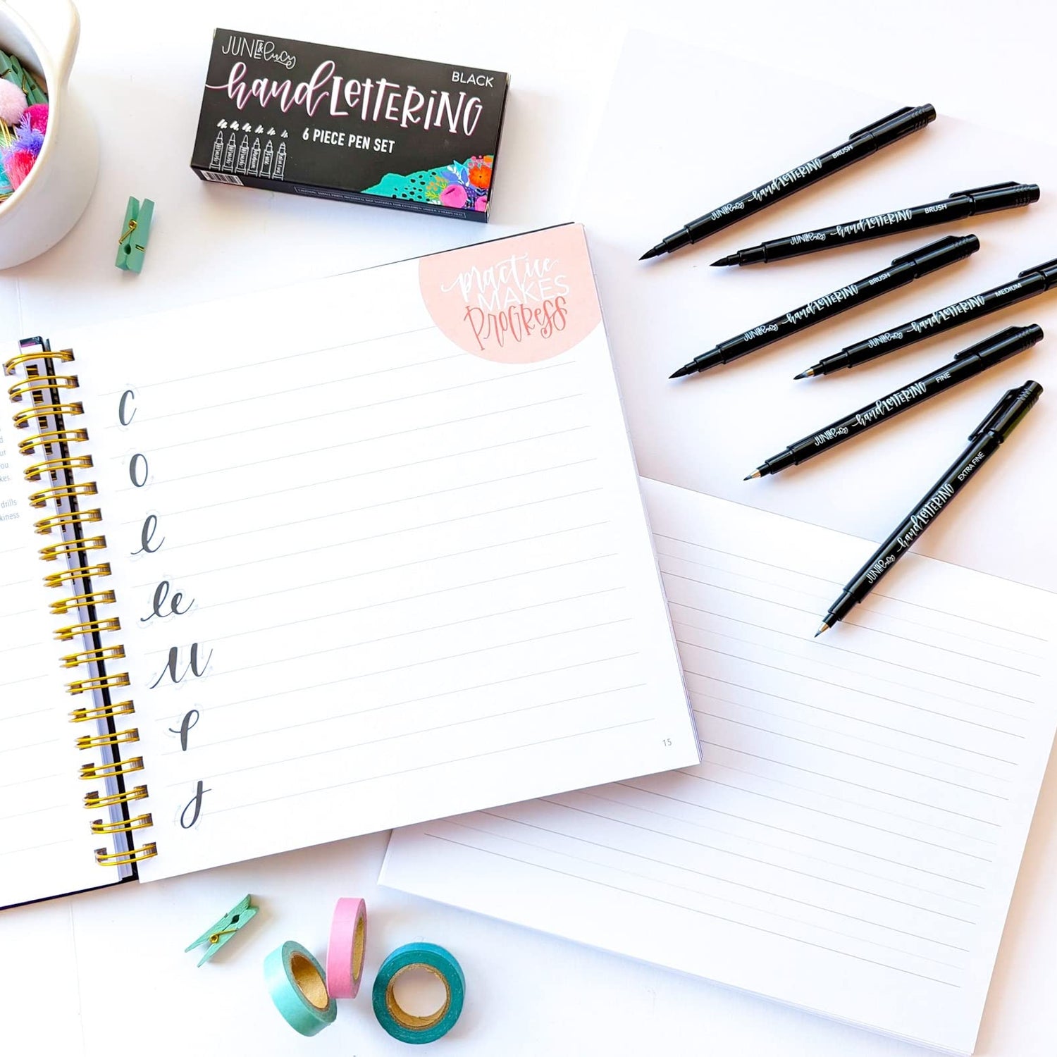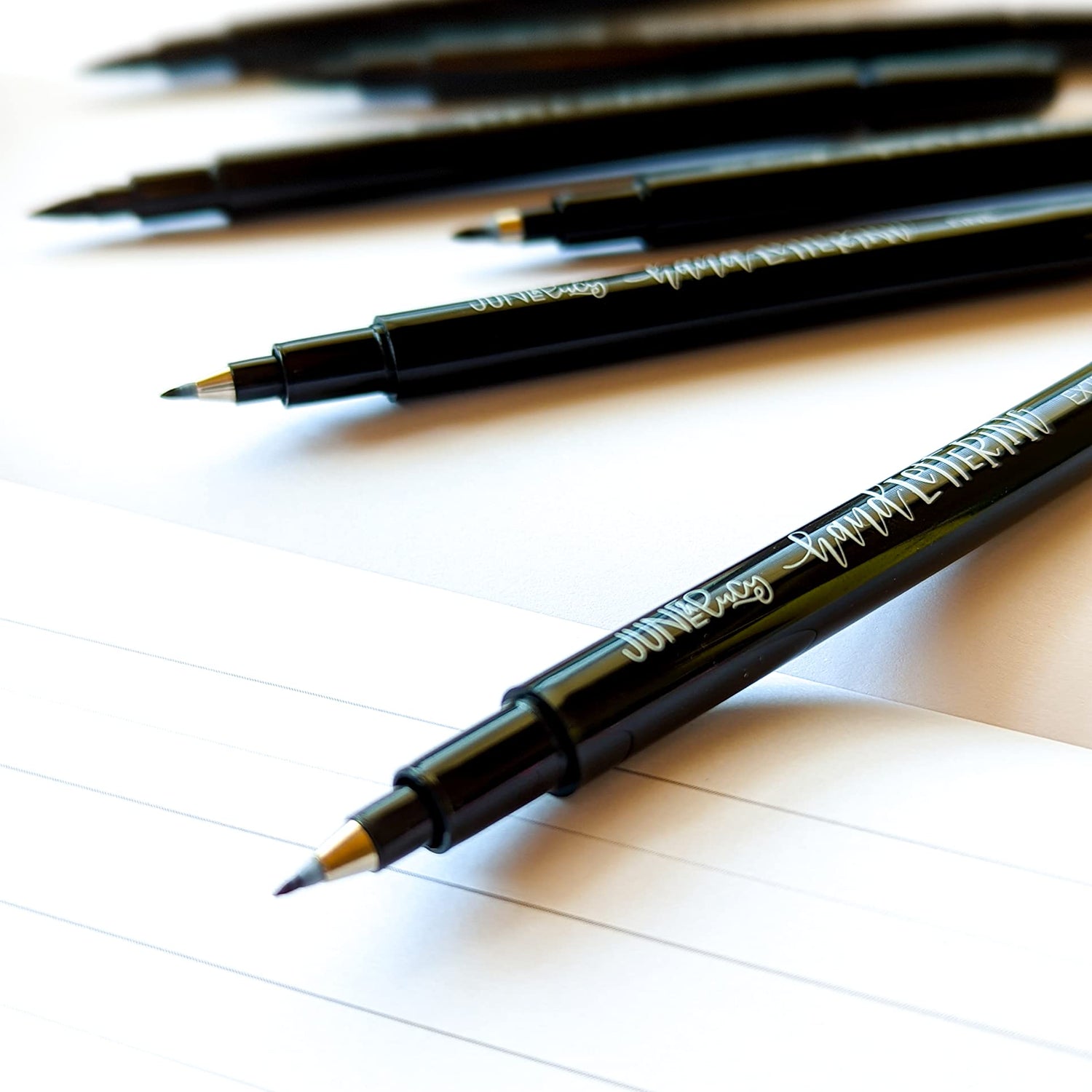 - Calligraphy Markers - This Hand Lettering Pen set comes with 6 marker pens in 4 different sizes (extra-fine, fine, medium, and brush). These are the best brush pens for hand lettering and modern calligraphy