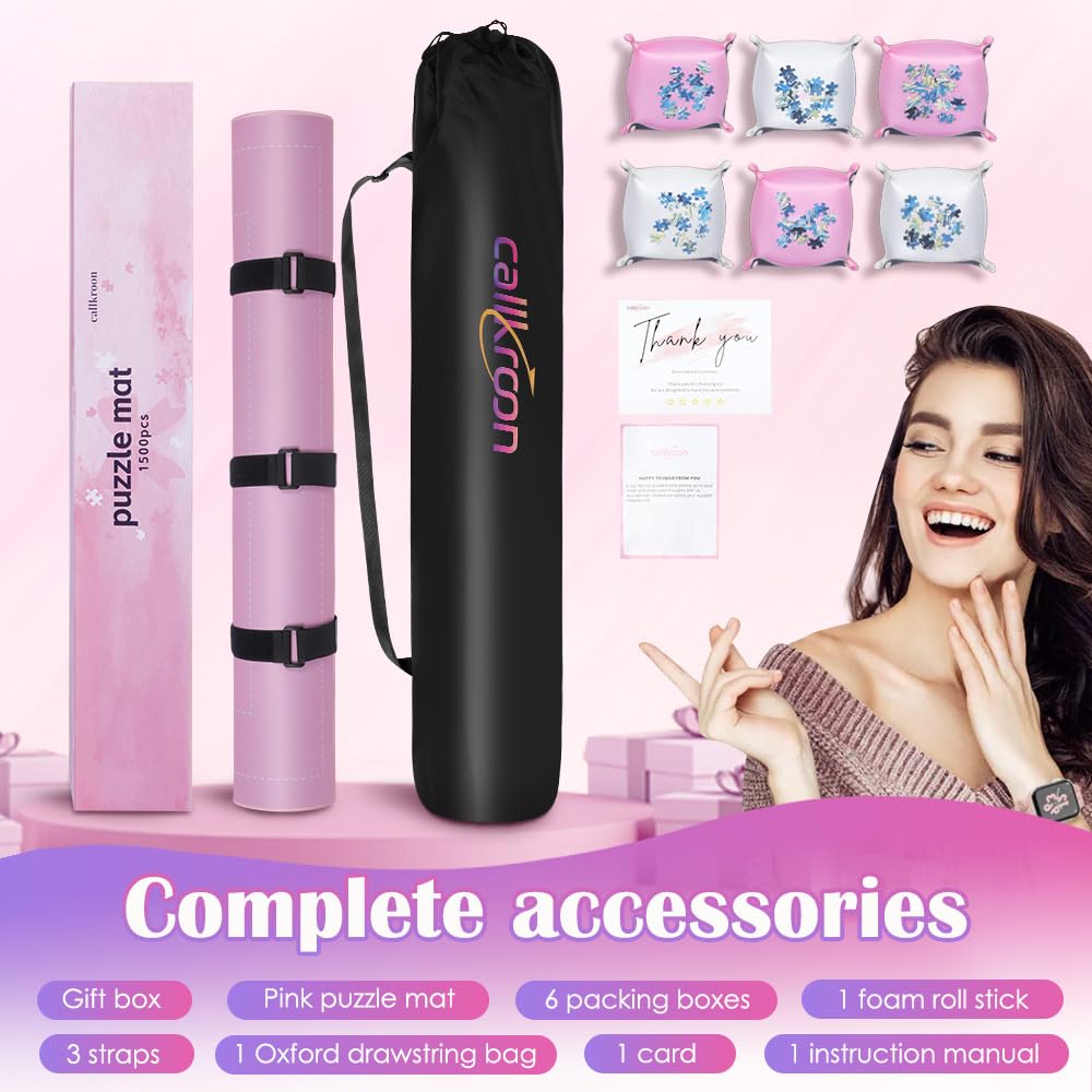 CALLKROON Puzzle mat Holds 2000 Pieces | roll-up Design with Non-Slip Rubber Bottom | 6 Sorting Boxes | Portable Puzzle Storage Box for Adults, Kids (Pink)