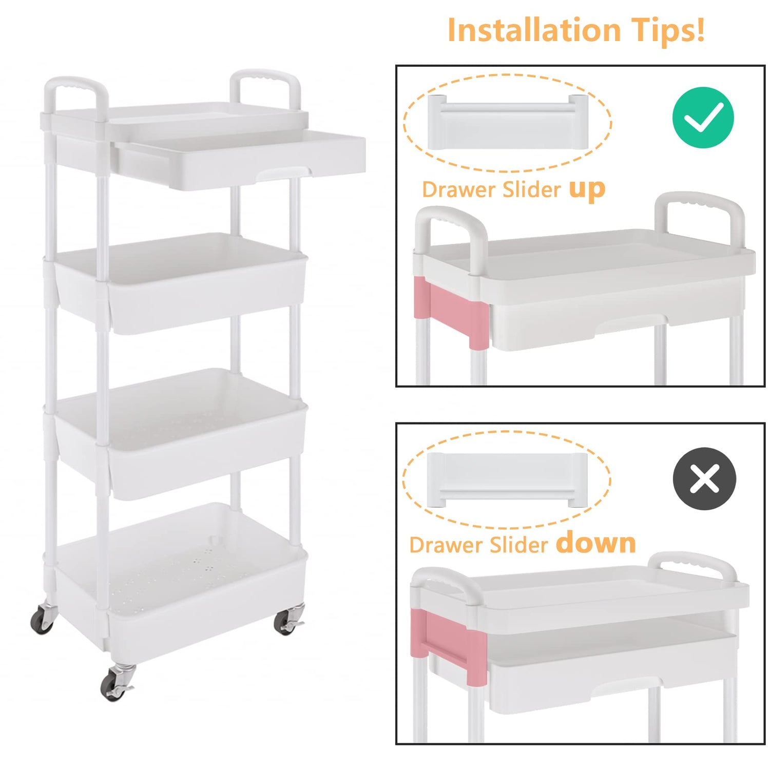 - Multifunctional Storage - This storage carts can be placed in the bedroom, toilet, baby room, and other places. You can use it as place toiletries, cosmetics, toys, diapers etc.