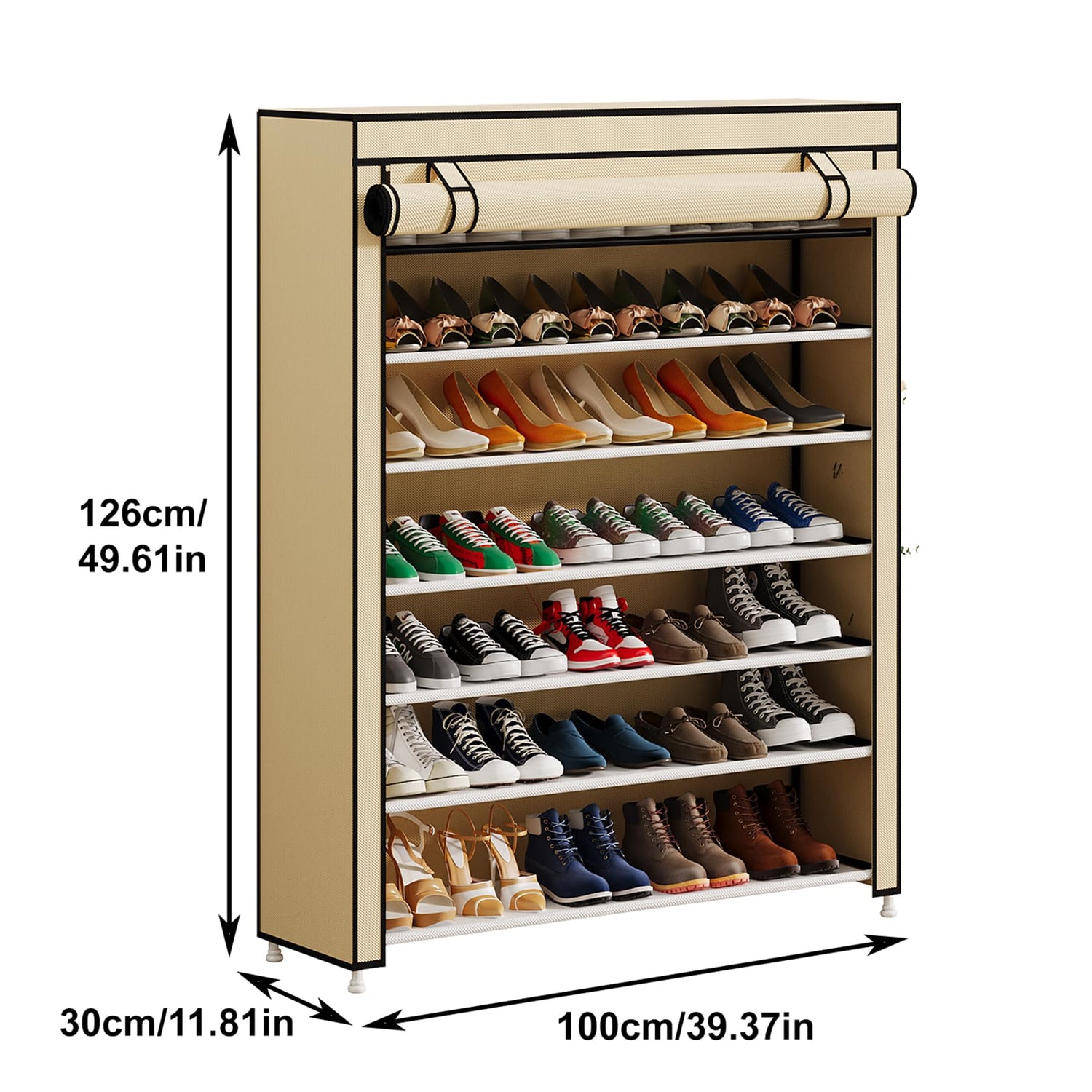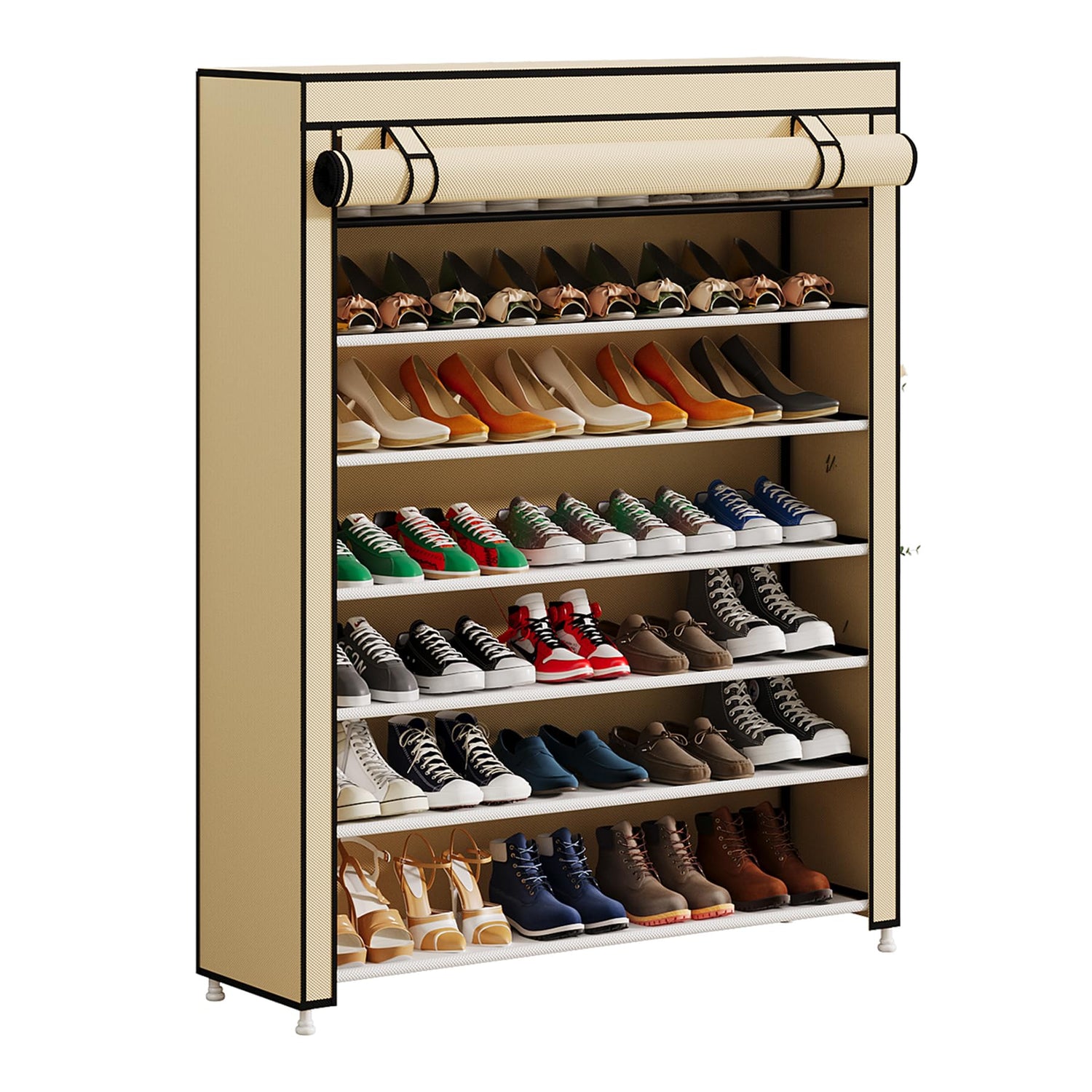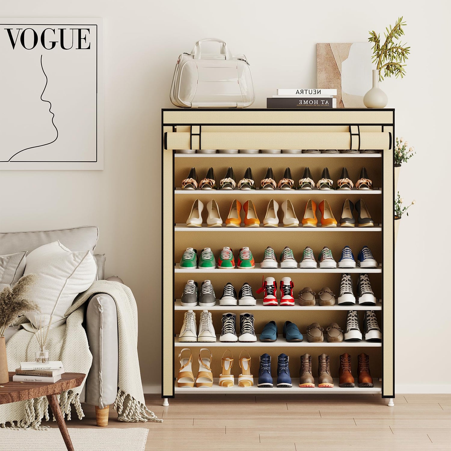 Calmootey 7 Tier Shoe Rack Organizer to Hold 35 Pairs, Portable Shoe Shelf with Nonwoven Fabric Cover for Closet Hallway, Bedroom, Entryway, Beige