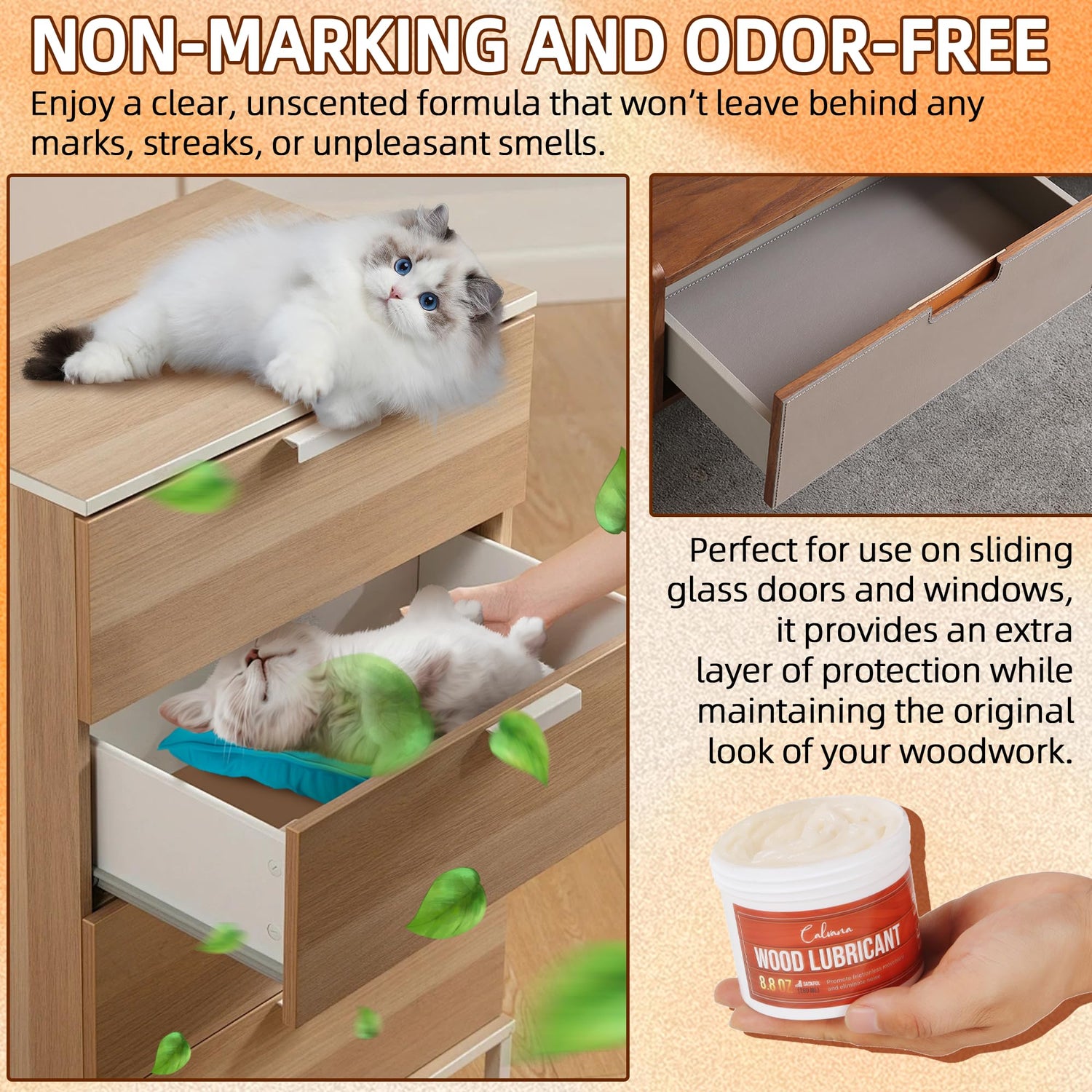 - Versatile Wood Lubricant: Ideal for lubricating various household sliding tracks, this semi-paste drawer wax undermount drawer slides, door hinges, sliding door, window tracks, and glides, ensuring smoother operation of all moving wooden parts