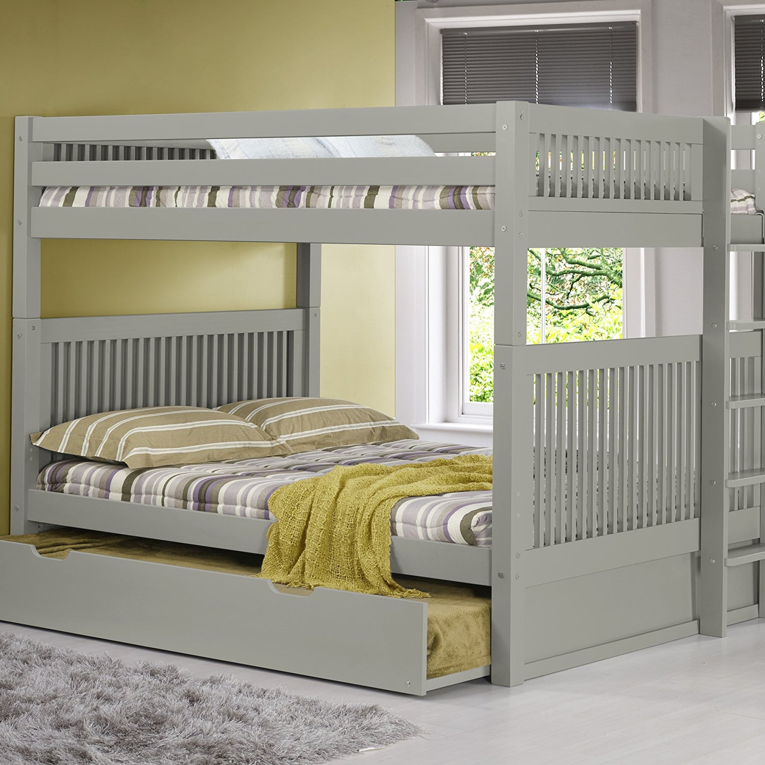 Camaflexi Bunk Bed with Trundle - Mission Headboard Bed End Ladder, Full, Grey Finish