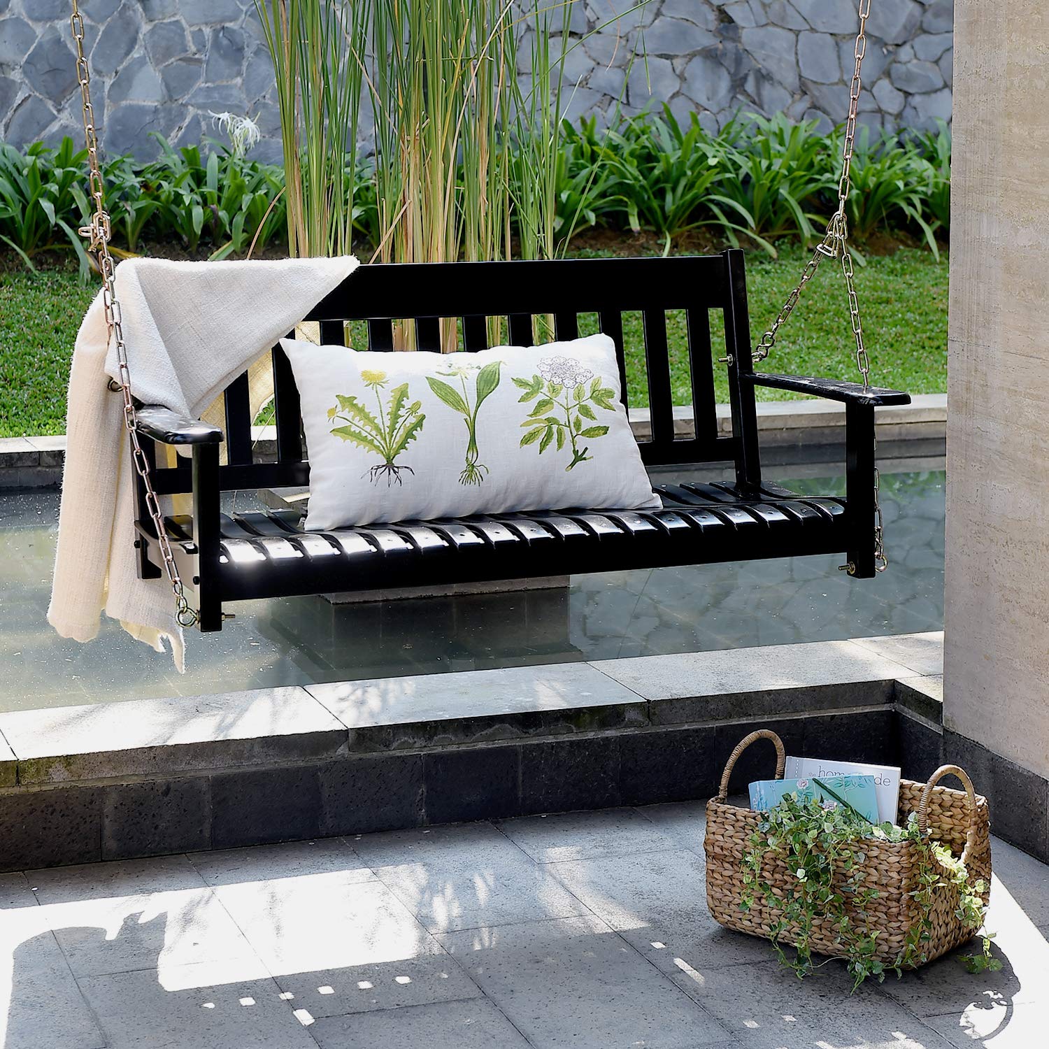 Details: Experience comfort and style with this premium quality porch swing. This outdoor swing for backyard features a beautiful design inspired by the charming homes in the countryside, making it a versatile addition to any porch or patio decor. The solid mahogany wood frame is both sturdy and durable, capable of supporting up to 500 lbs. The backrest and seat of our swing chair are ergonomically contoured for ultimate comfort during long hours of relaxation. The mahogany wood frame is coated with a polyurethane finish for protection against outdoor elements, and the swing comes in your choice of finely sanded natural teak, black, white, or natural brown finish. Assembly is made easy with a clear step-by-step instruction manual, so you can start enjoying your new outdoor wooden swing in no time.