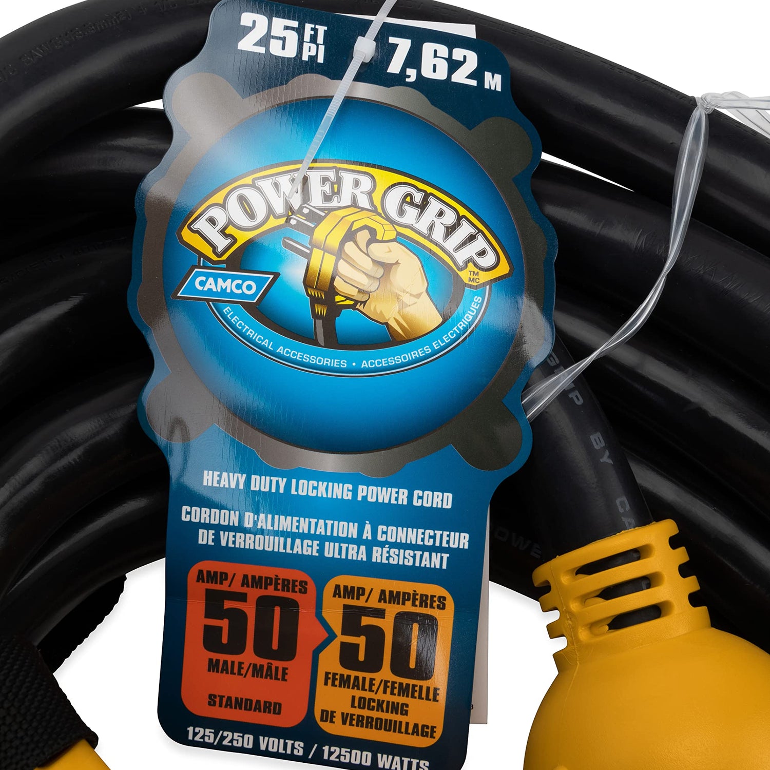 - Effortless Power For RVS & EVS: Power up your RV or electric vehicle with Power Grip's 50 amp RV cord. This 25' long camper essential offers ample length to keep your RV or EV reliably powered.