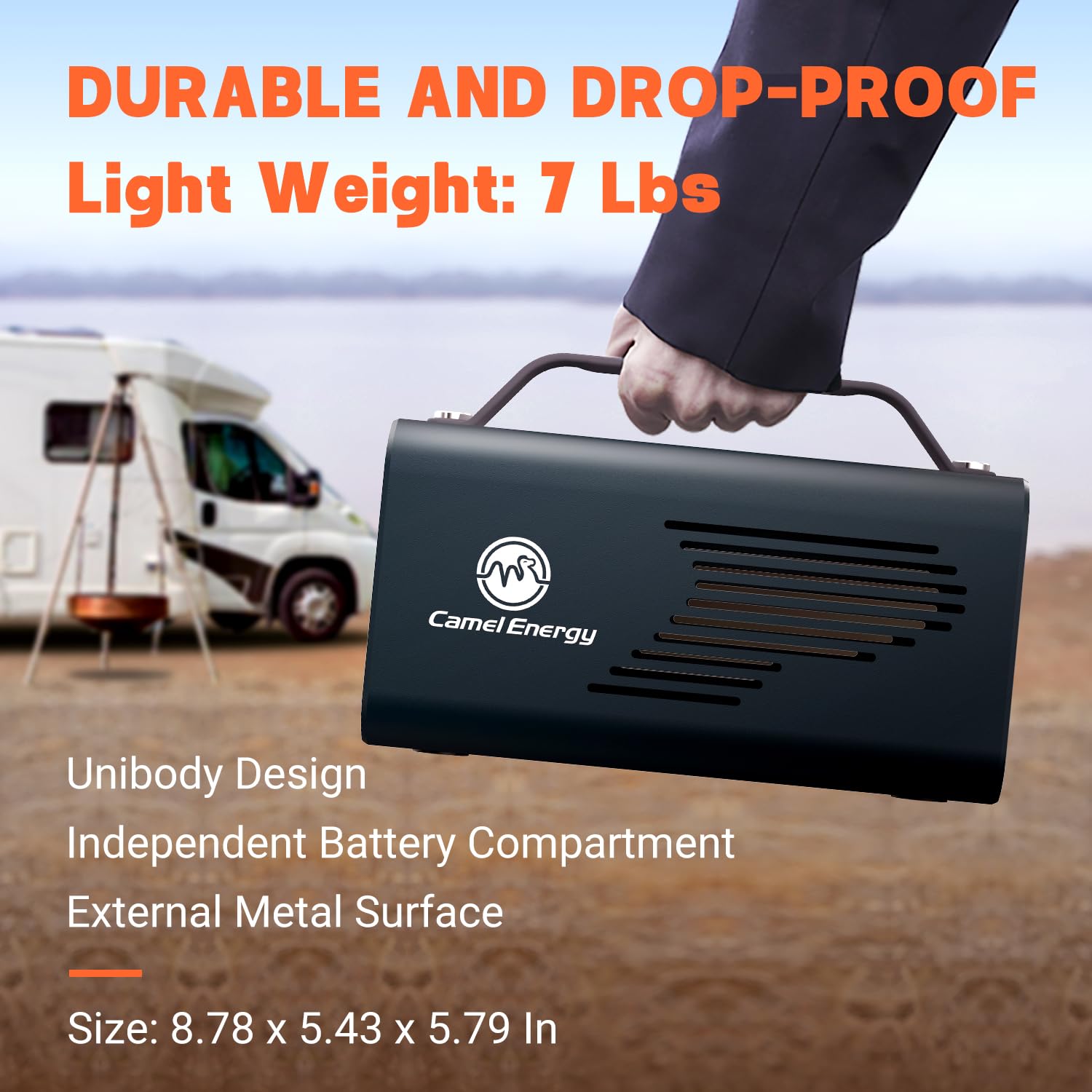 - Compact and Lightweight: The camelenergy portable power station is compact (8.7 x 5.4 x 5.8 inches), lightweight (7 pounds), and has a capacity of 230.88wh, making it very convenient in various situations. Whether you are facing an emergency at home or camping outdoors, this power station can help you. The compact handle design allows you to effortlessly carry this power station with you, giving you access to power wherever you go.