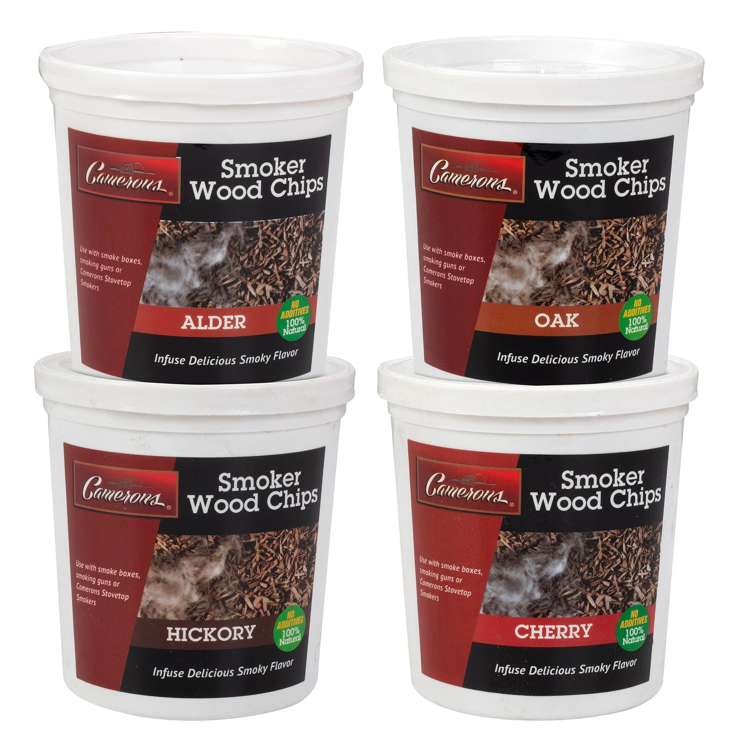- Value Pack Variety Gift Set of Alder, Cherry, Hickory, and Oak BBQ Smoker Extra Fine Wood Chips. Ignite quickly and combust completely to create a delicate smokey flavor. Best Selling Gift Pack great for Father’s Day, Memorial Day, Summer Barbecue Cookouts, 4th of July, and more!