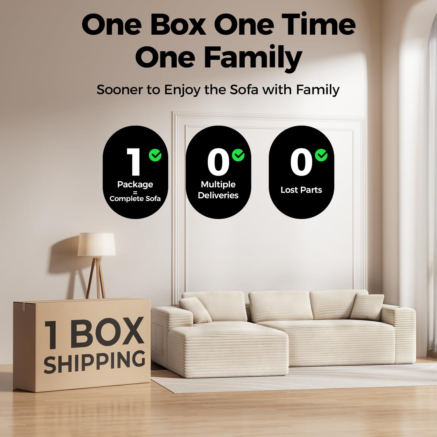 - [1 Package Shipping] : This modular sectional sofa ships in a single box—you can sooner to enjoy the sofa with family. No waiting for multiple shipments, no assembly hassles. Enjoy fast, convenient delivery, and start relaxing on your new sofa as soon as it arrives! And it suggets allow 48–72 hours to regain original shape and firmness.