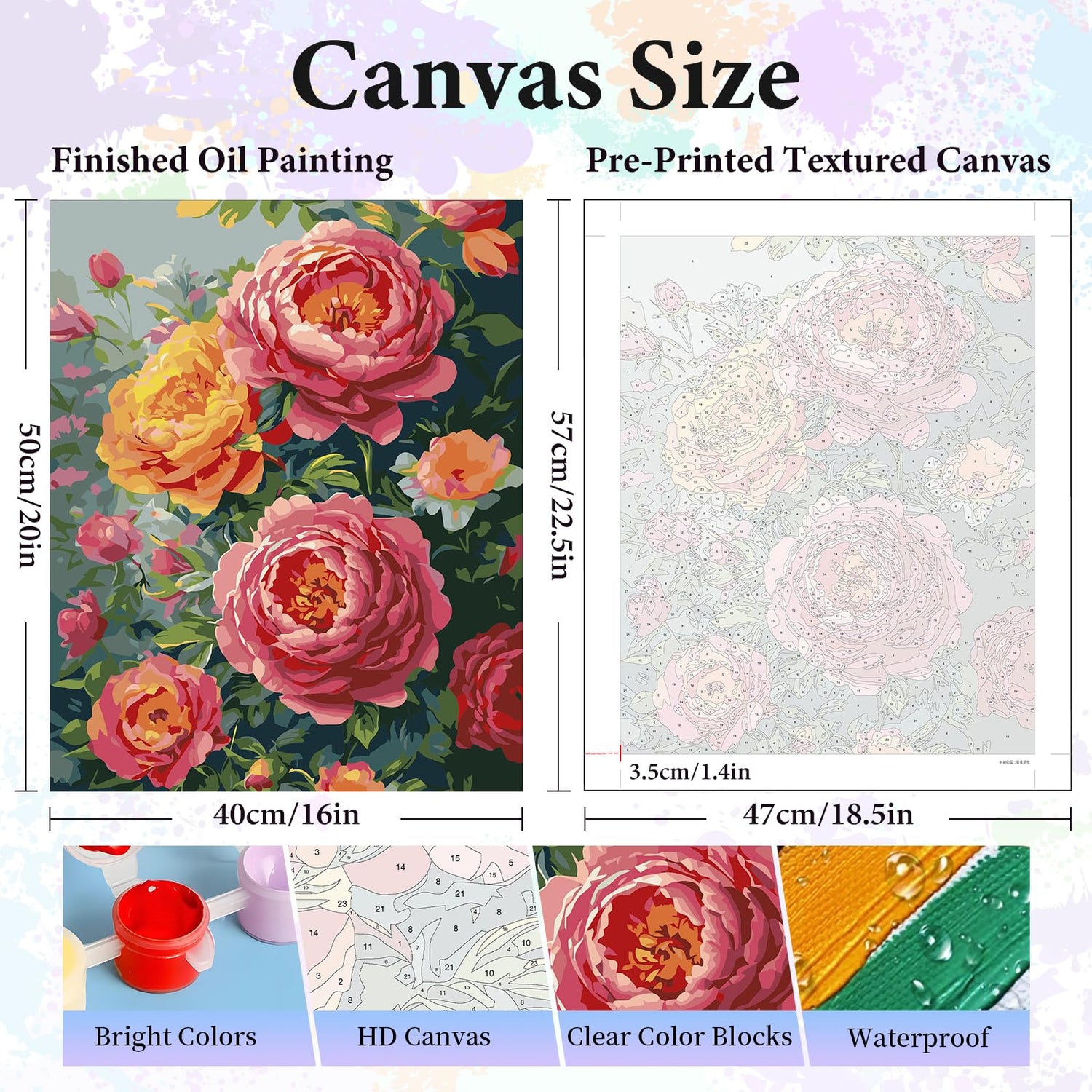 Camocin Paint by Numbers Kit for Adults - Flowers Adult Paint by Number Kits on Canvas Without Frame for Beginner, Peony Floral Oil Painting by Numbers Kit for Gift Home Wall Decor 16x20 Inch