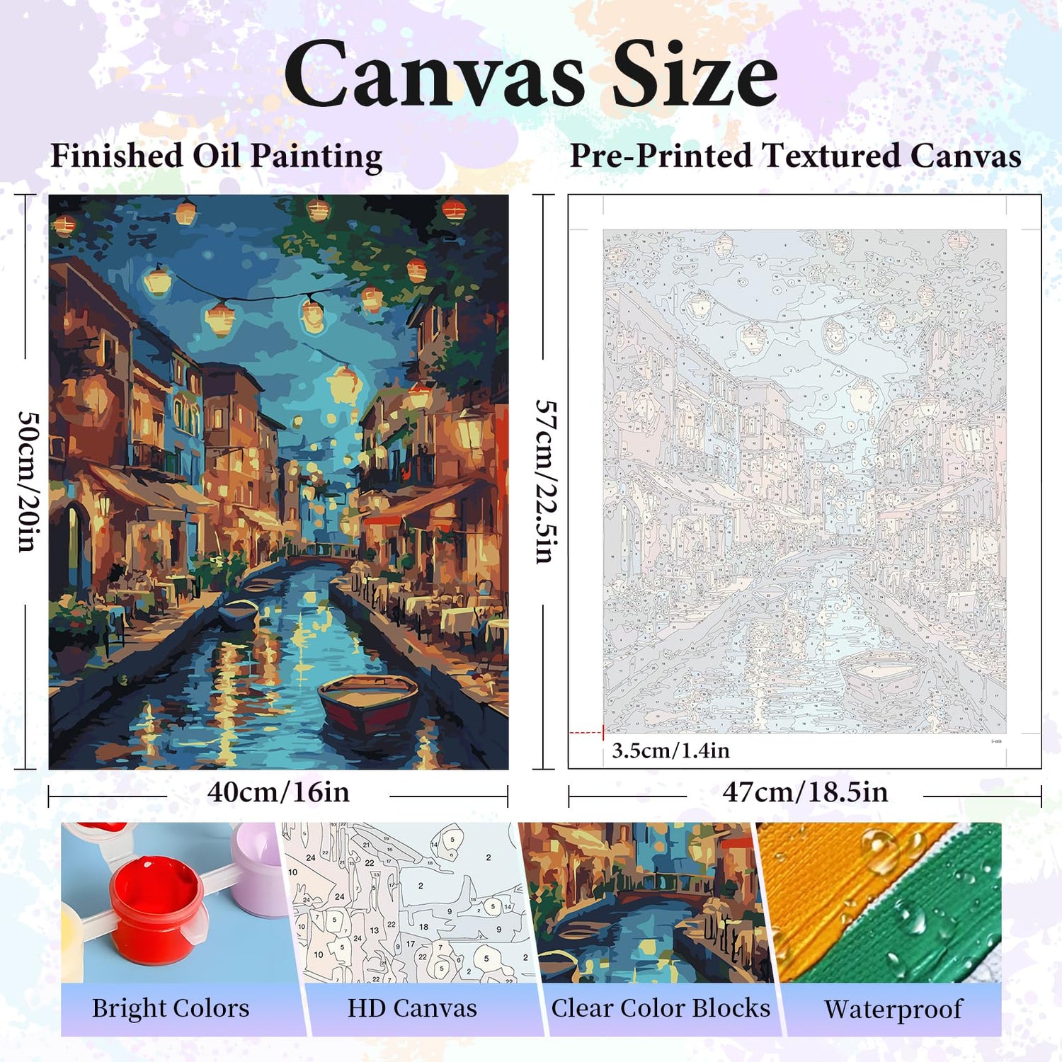 Camocin Paint by Numbers Kit for Adults - Venice Adult Paint by Number Kits on Canvas Without Frame for Beginner, Stream Landscape Oil Painting by Numbers Kit for Gift Home Wall Decor 16x20 InchInch