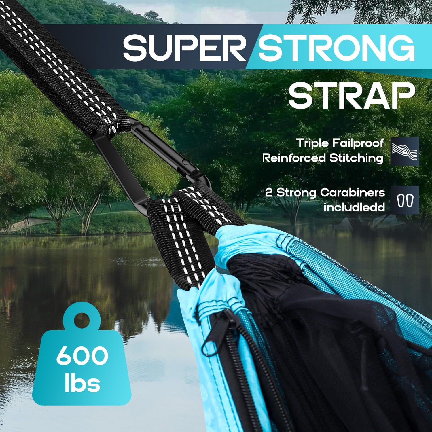 - Superior Mosquito & Bug Protection:This camping hammock with mosquito net is made with ultra-fine mesh fabric (e.g., 380 holes per square inch) to effectively block insects while maintaining breathability for a comfortable outdoor sleep. It features 360° full-wrap protection designs for enhanced protection, making it one of the most reliable hammocks for outdoor adventures
