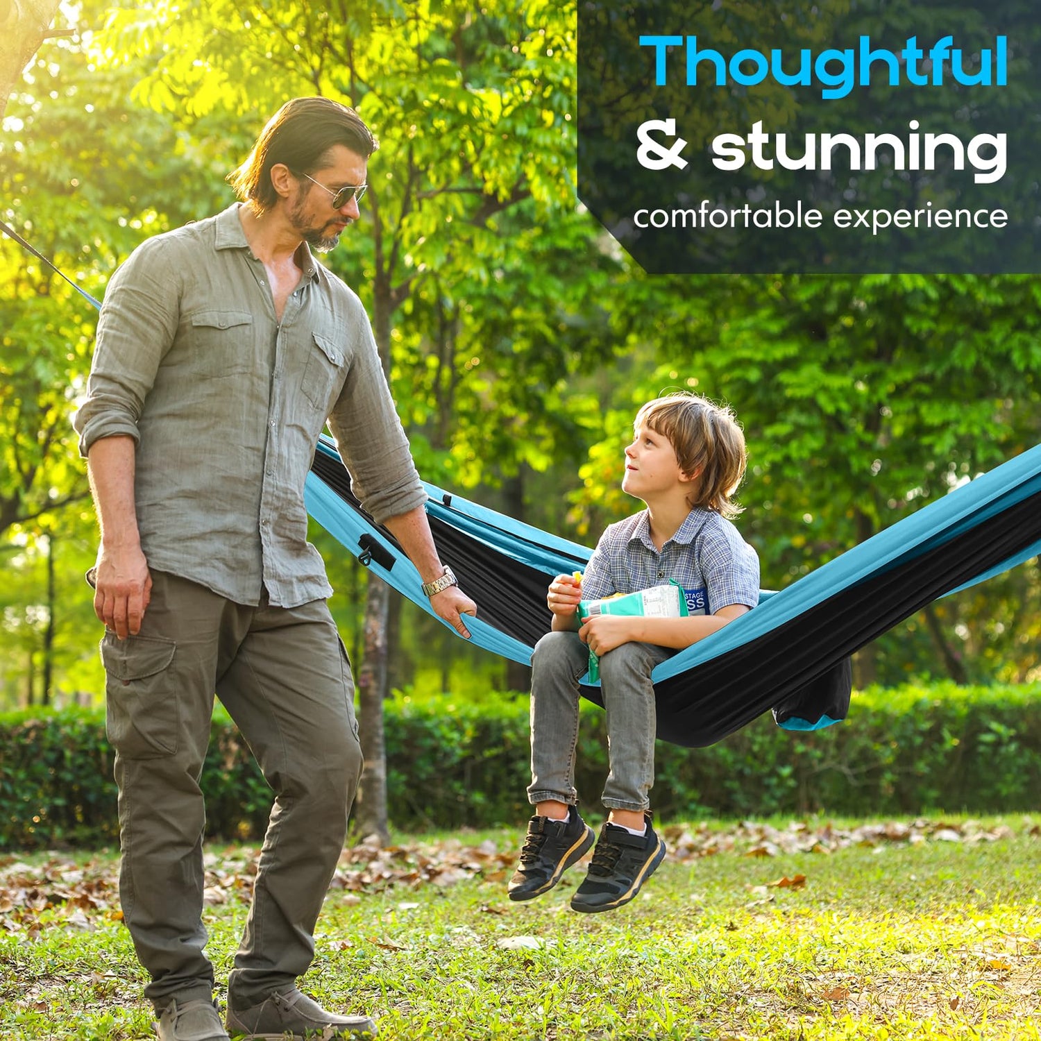 - High Weight Capacity & Durable Material (Nylon/Polyester):Crafted from high-density nylon or polyester fabric, this heavy duty hammock offers abrasion resistance, water resistance, and tear strength. With a weight capacity of up to 600 lbs, this hammocks for outside is ideal for family or multi-person use