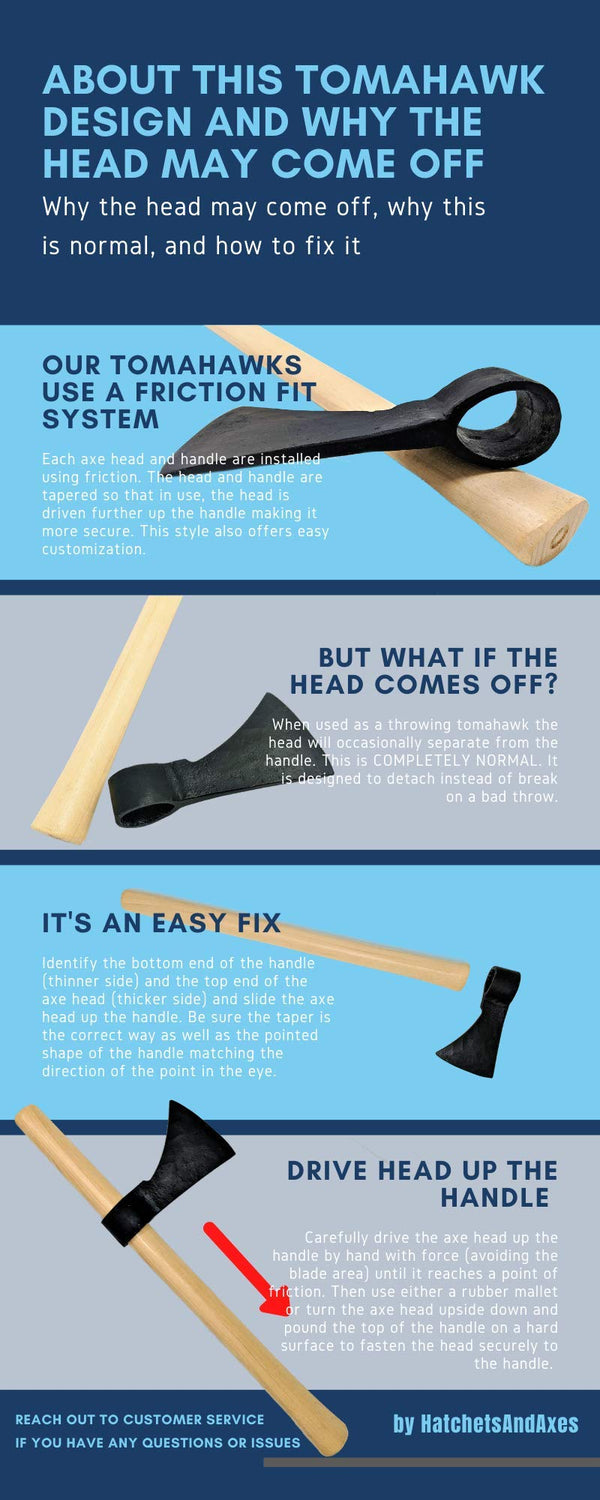 Details: Must-See Product Video Why Buy Our Poll Camp Throwing Hawk? 1. Now Even Harder High Carbon Steel Hand Forged Head (very sharp!). 2. Fully welded socket - no spot welds (basically unbreakable!). 3. WAXED straight grain American Hickory handle. 4. Clear coat rust protectant coating. 5. Guaranteed against manufacturers defects. More Hammer Camp Throwing Hawk Info Overview: The Poll Camp Hawk is the best all around utility tomahawk that can be perfect for camping and backpacking but also a fun throwing tomahawk as well. It is called a poll tomahawk because it has a hammer-type backing to the tomahawk head to make for easy hammering & driving tent stakes. The blade is 3.5 inches. Comes with a straight grain American Hickory handle made right here in the USA. *Note: The handles are made in the USA. The heads are not secured to the tomahawk handle with pins or any other way. This is on purpose as you may want to customize or interchange handles to your liking. They can be secured to your liking by turning the tomahawk upside down and gently hitting the tip of the handle to the ground thus forcing the tomahawk head upwards into the handle. Features Include: Blade Length: 3.5 inches Pole (or Hammer) Head Overall Length: 19 inches Overall Weight: 2.0 lbs Straight Grain, Smooth Sanded, Waxed Hickory Handle Extra Handles Available Extra Handles That Fit This Hawk: 19 inch Hickory Throwing Tomahawk Handles (HD101) More About Thrower Supply Brand Thrower supply is a throwing tomahawk manufacturer that offers uniquely hand forged throwing tomahawks. They supply hawks to throwers across the world. For quality throwing tomahawks at affordable prices, Thrower Supply is the ideal brand of tomahawk!