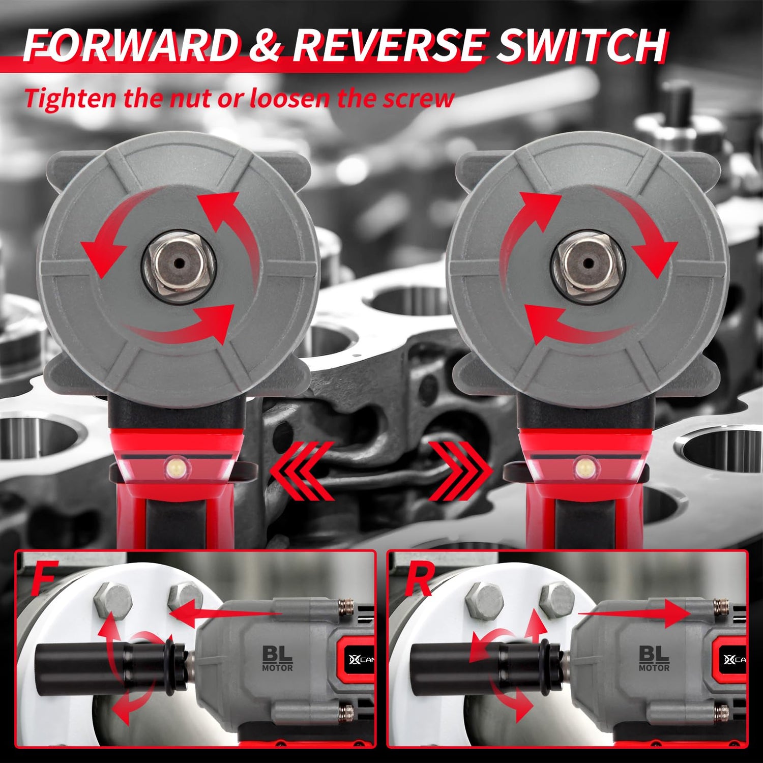 - 🛠️TWO-WAY BRAKE - electric impact wrenches have a forward and reverse direction mode, in reverse mode, once the nut or bolt is loosened, the brake stop will activate and reduce the speed and torque to prevent the part from flying anywhere, thus protecting itself.