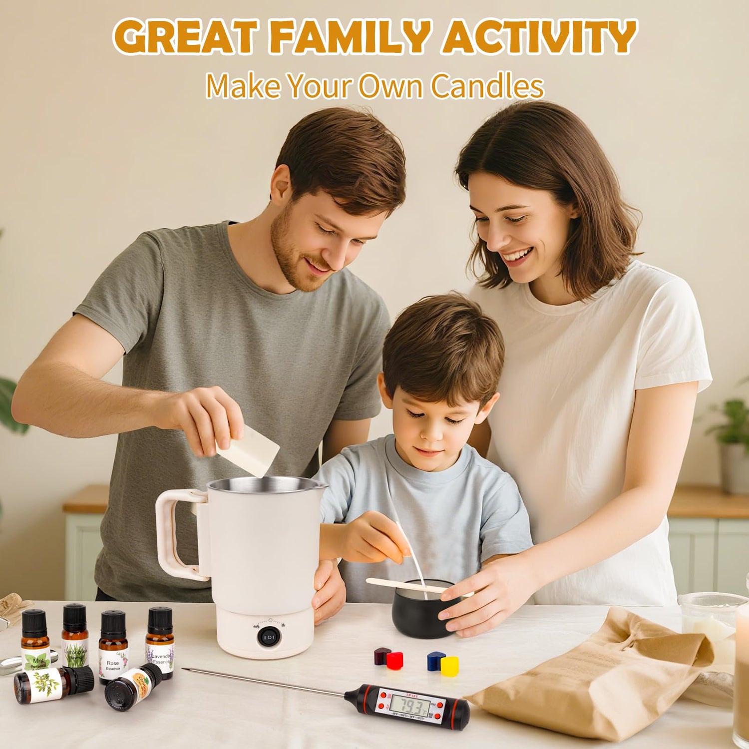 - Professional wax melting furnace: Equipped with the latest wax melting furnace and thermometer, whether you are a professional candle maker or an amateur, the integrated wax melting furnace will definitely be of great benefit to your handmade candle making. You don't need to buy complicated tools such as electric stoves and stoves separately, it can help you maximize the fun of candle making. It can also be used to make soaps, lipsticks and other handicrafts.