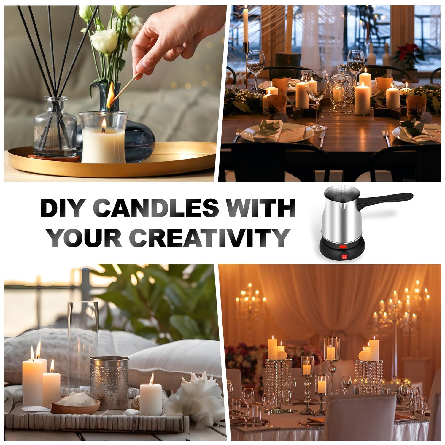 Candle Making Kit with Wax Melter,Electric Candle Wax Melter for Candle Making, Stainless Steel Wax Melting Pot, 52IN Power Cord,Candle Making Supplies
