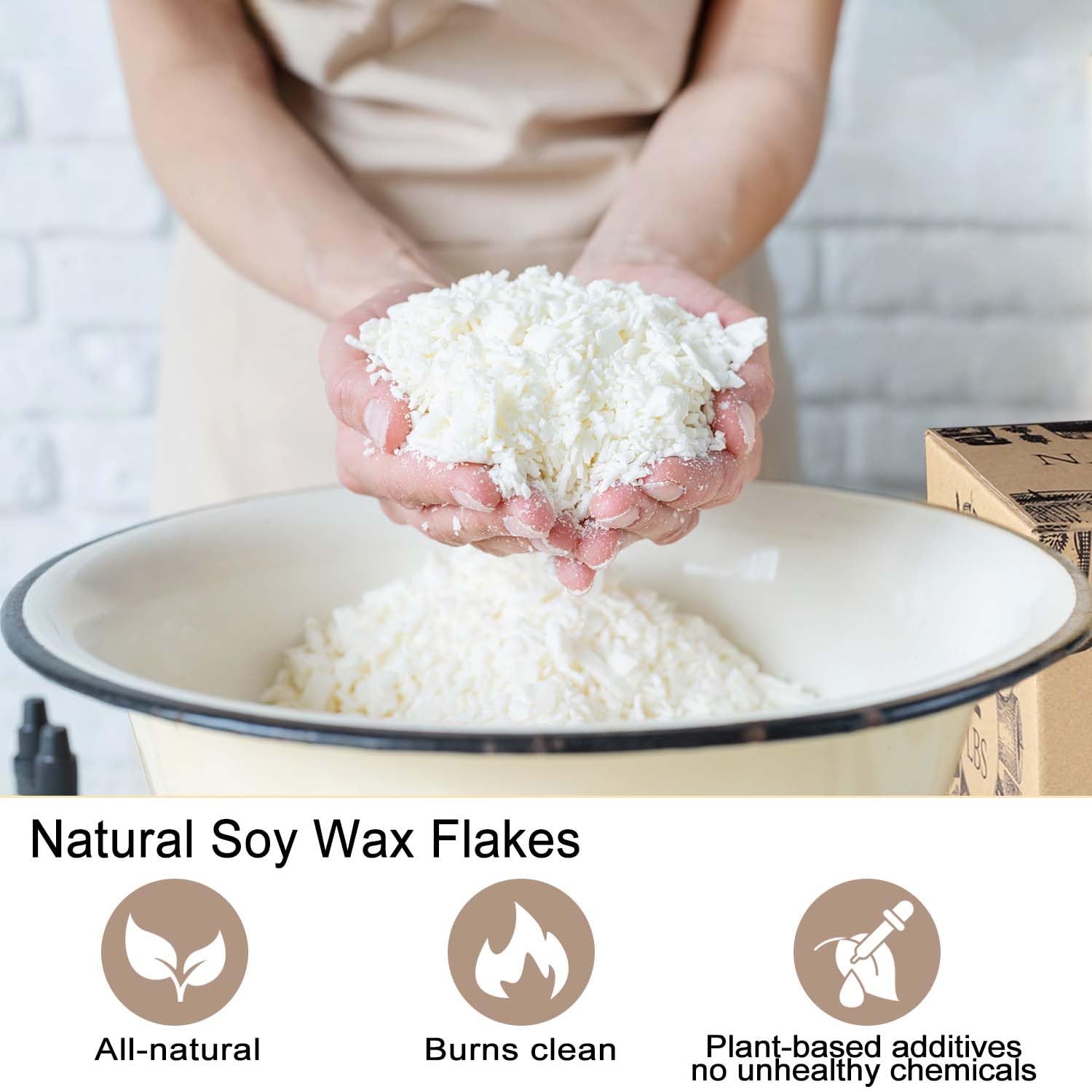 - Natural: Our white soy wax flakes are 100% pure and natural, they burn without producing black smoke or strange smells and do not cloud the air.