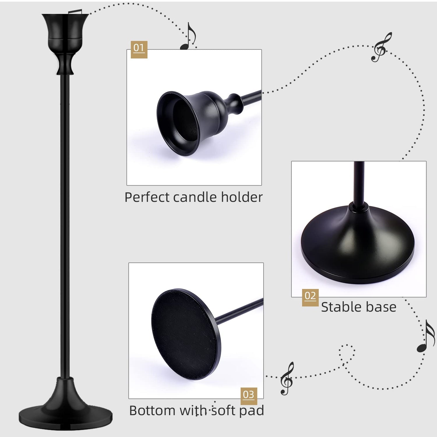- 👍【Sturdy and Stable black candlestick holders】Made of solid, durable, high-quality aluminum alloy material,this candlestick holder is durable and sturdy enough to hold tall taper candles. Each black candle stick holder set can fit 3/4 inch and 7/8 inch small pillar candles as well as LED cone candles to match your dining table decor.It provides a stable base for your candles,ensures stability and longevity for your candles.