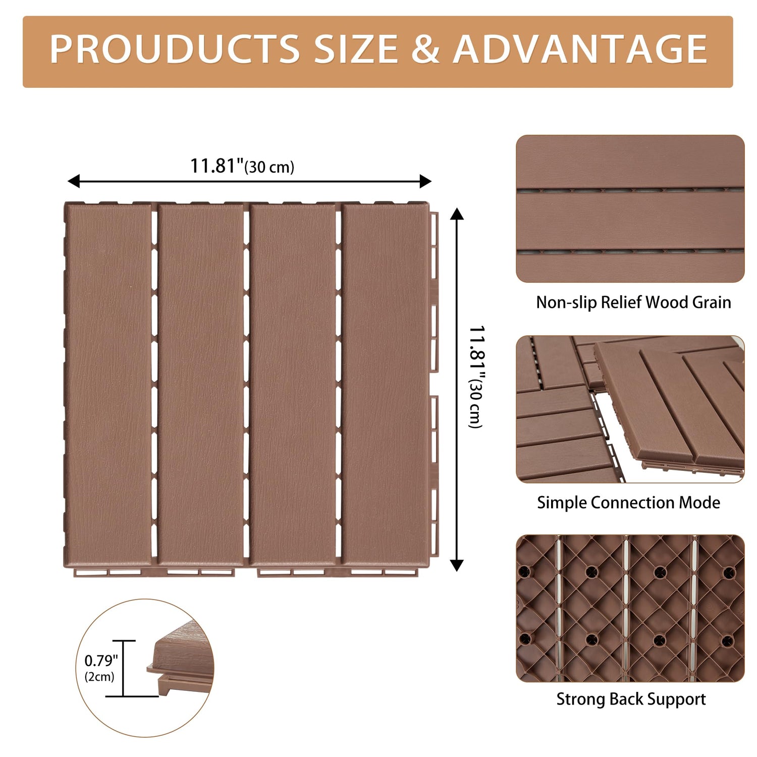 - 🔷【Multiple Application Range】: Our floors are high class coffee, simple design, paving to upgrade your terrace instantly. A wide range of applications, very suitable for outdoor terraces, courtyards, bathrooms, corridors, gyms, pet houses, school playgrounds, etc.