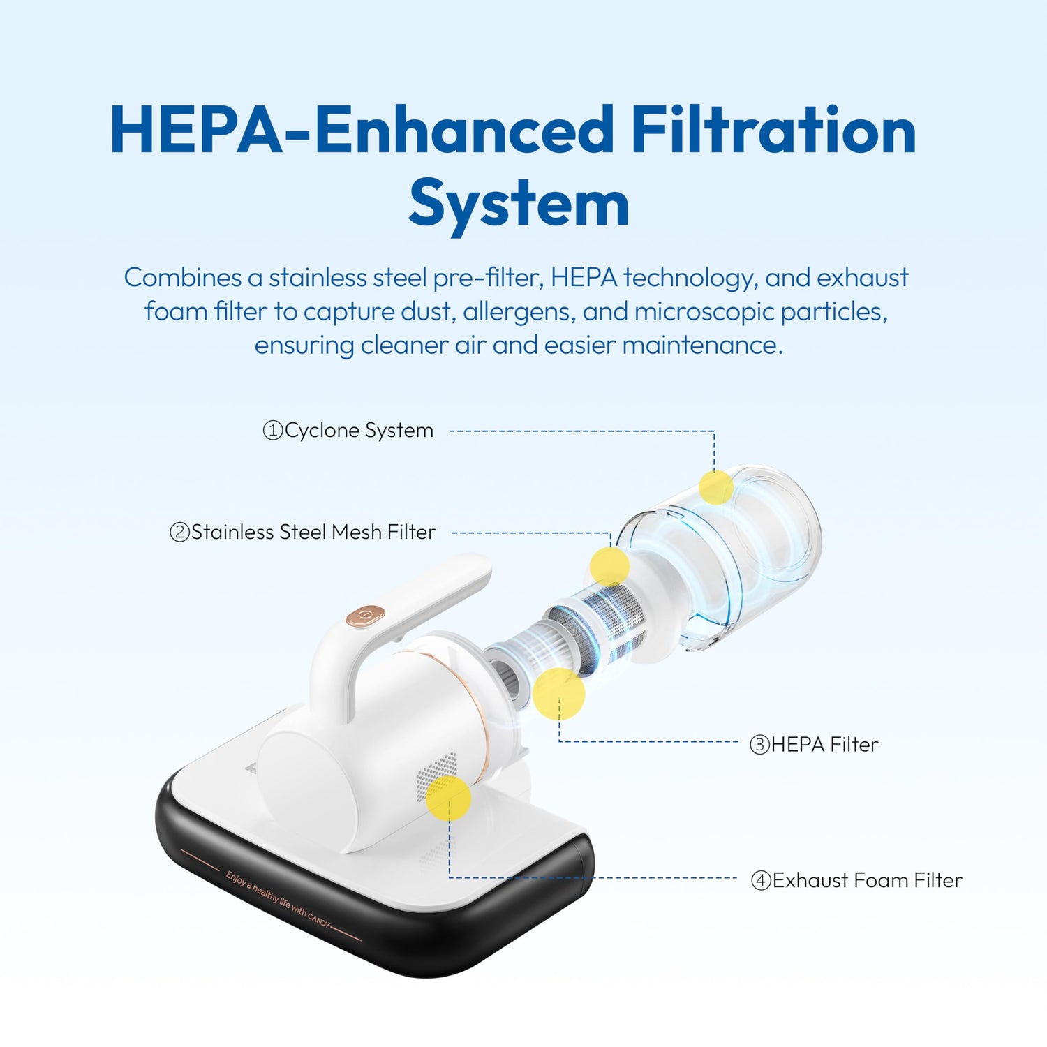 Details: CANDY Mattress Vacuum Cleaner UV Sanitizing with HEPA Filter