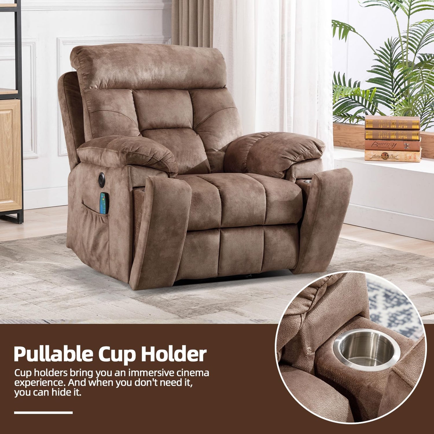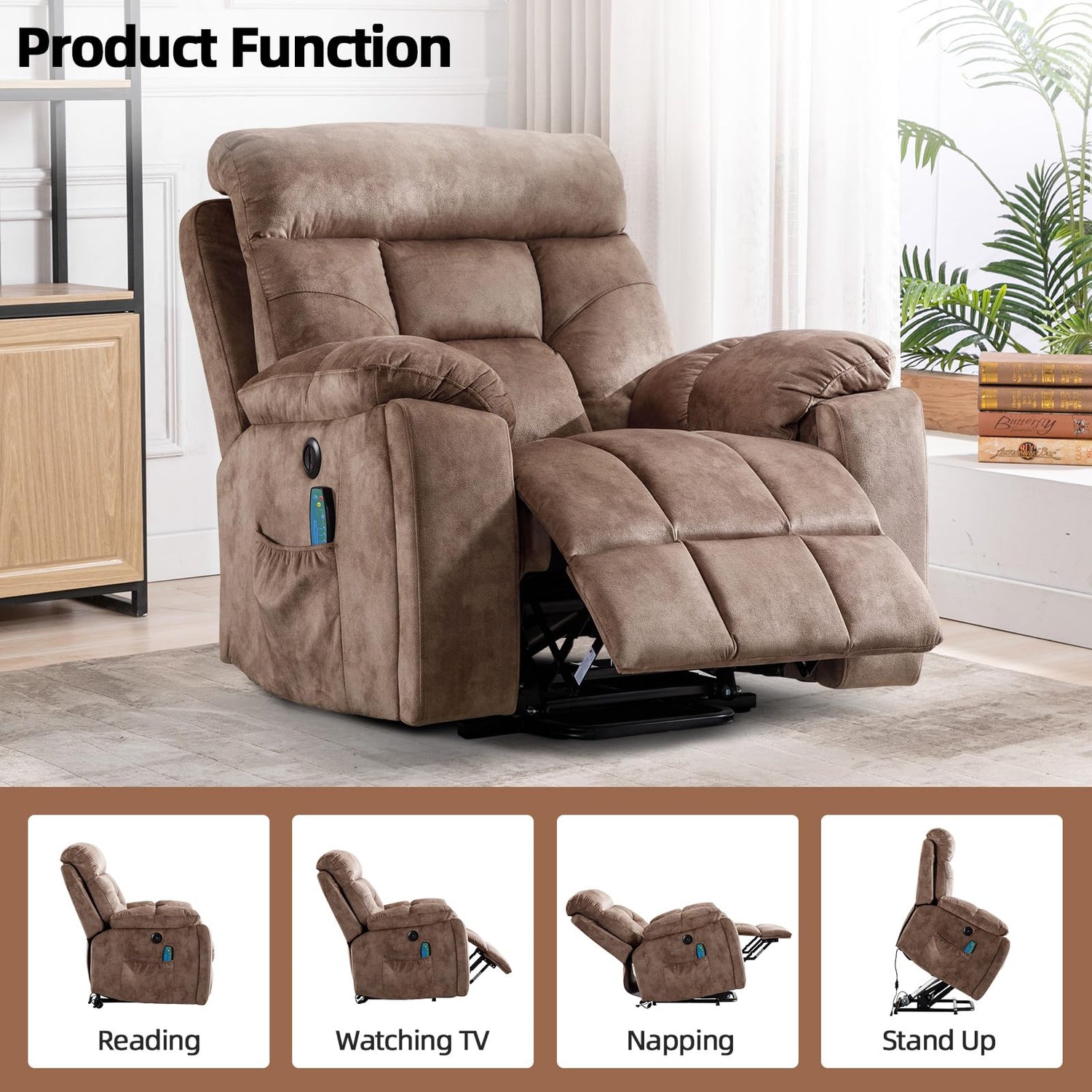 CANMOV Large Power Lift Recliner Chair with Massage and Heat for Elderly Big and Tall People, Overstuffed Wide Recliners with 2 Cup Holders, Side Pocket and USB Port, Camel