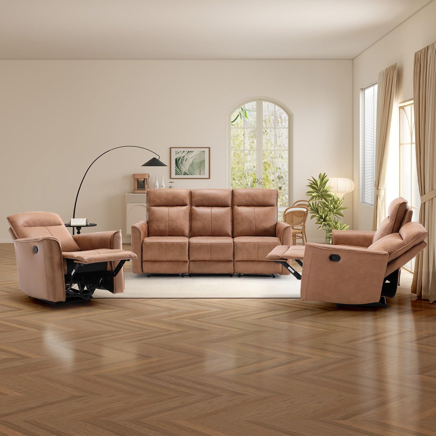 - Manual Reclining Sofa Set-Overstuffed armrest and high backrest create a classic and traditional look that's perfect for modern style homes. Comfortable padding, excellent lumbar support and a fully upholstered seat allow you to enjoy your rest time.