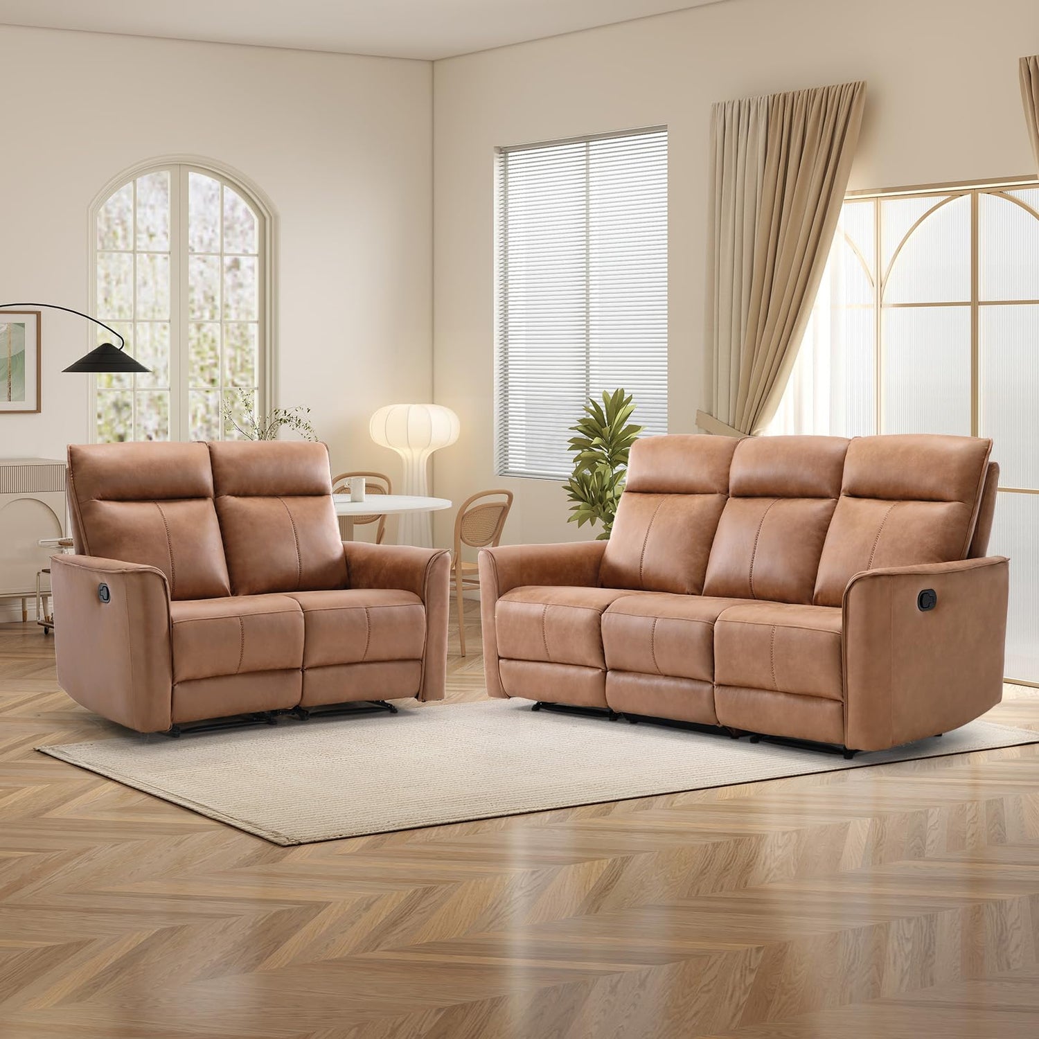 CANMOV Manual Loveseat Recliner Sofa Set, Wall-Hugger Reclining Living Room Furniture Set, Leathaire 2-Seater Recliner Chair and 3-Seat Reclining Sofa Couches for Office, Villa, Brown(Loveseat+Sofa)