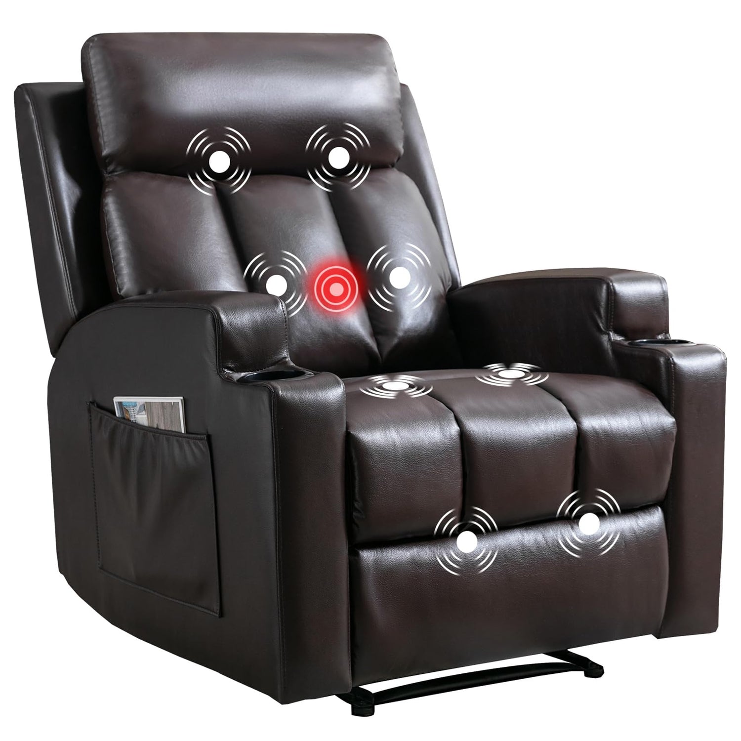 CANMOV Manual Recliner Chair with Massage and Heat,Breathable Leather Recliner Chair with Armrest and Backrest, Manual Reclining Single Sofa with 2 Cup Holders, Side Pocket for Living Room,Dark Brown