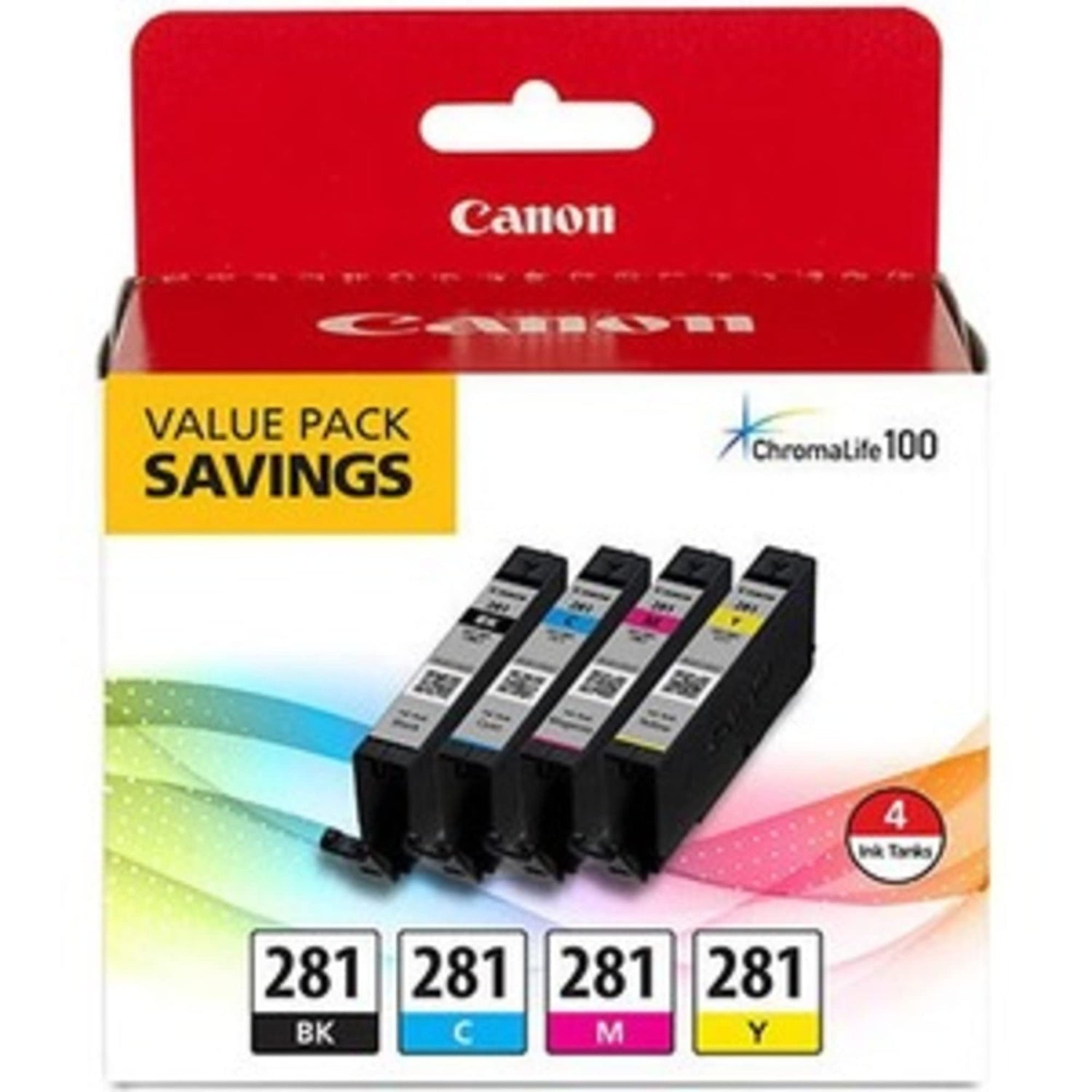 Canon CLI-281 Black, Cyan, Magenta and Yellow 4 Ink Pack, Compatible to TR8520, TR8620 Series, TS9120, and TS6210 Printers