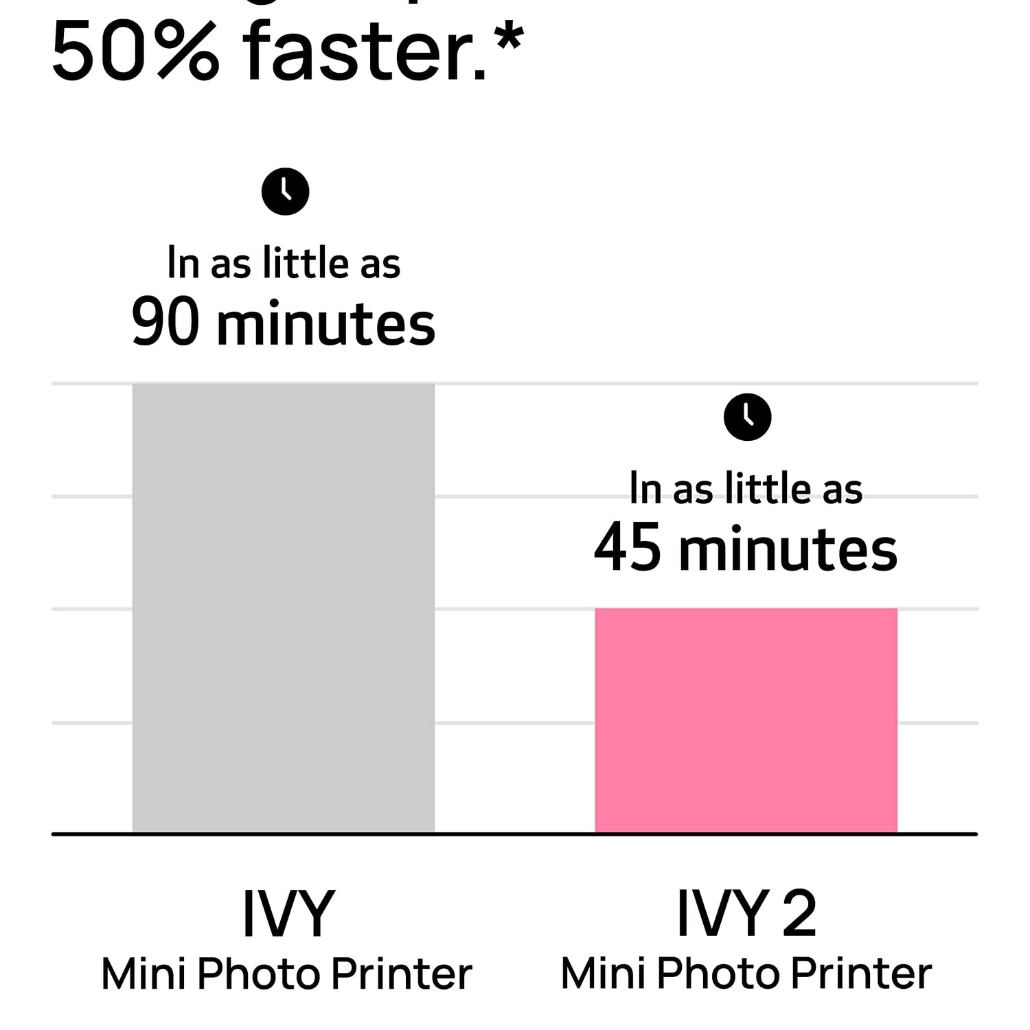 - PRINT QUALITY IMPROVED in the IVY 2 Mini Photo Printer(optimized skin tone colors, improved photo contrast, optimized photo sharpness)