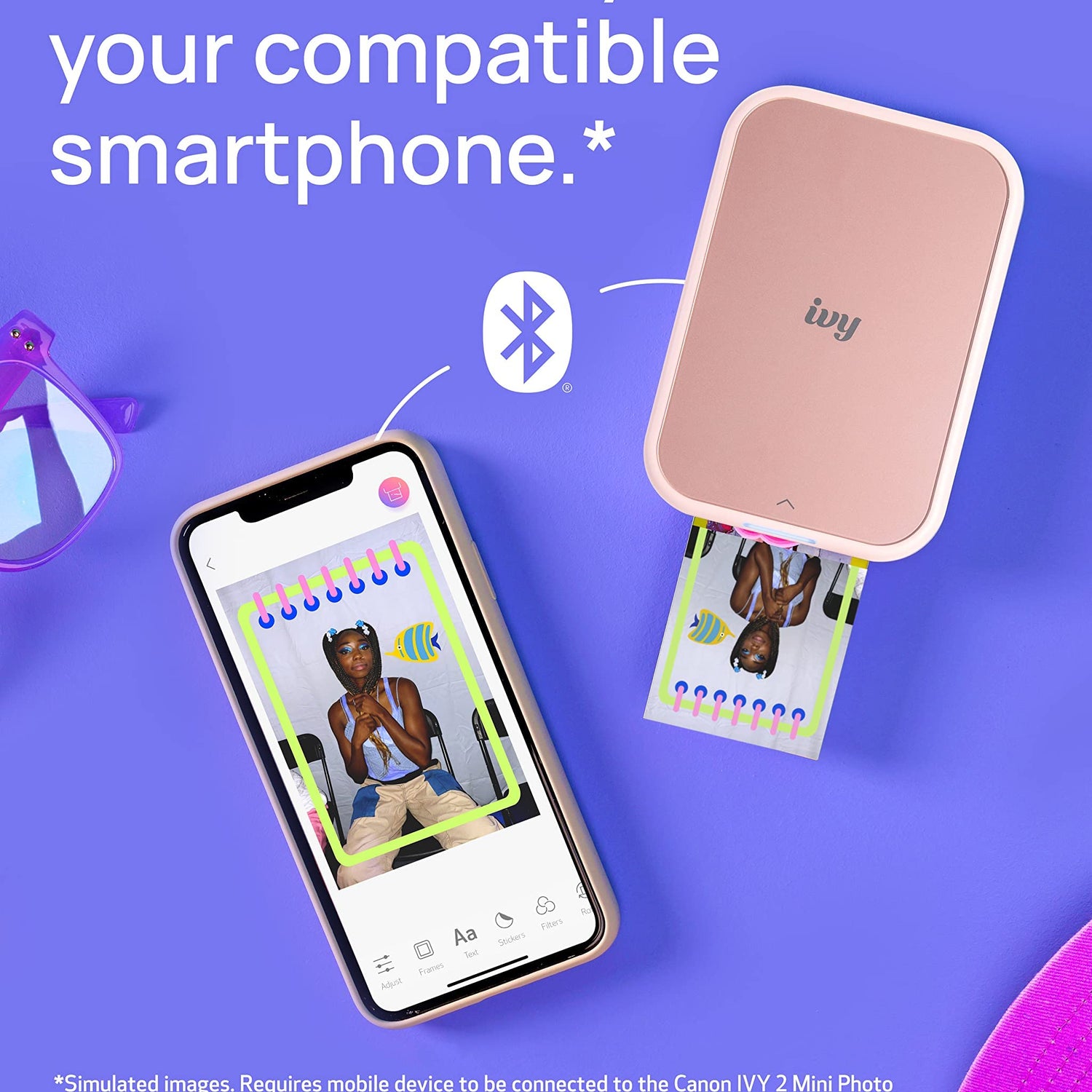 Canon Ivy 2 Mini Photo Printer, Print from Compatible iOS & Android Devices, Sticky-Back Prints, Blush Pink