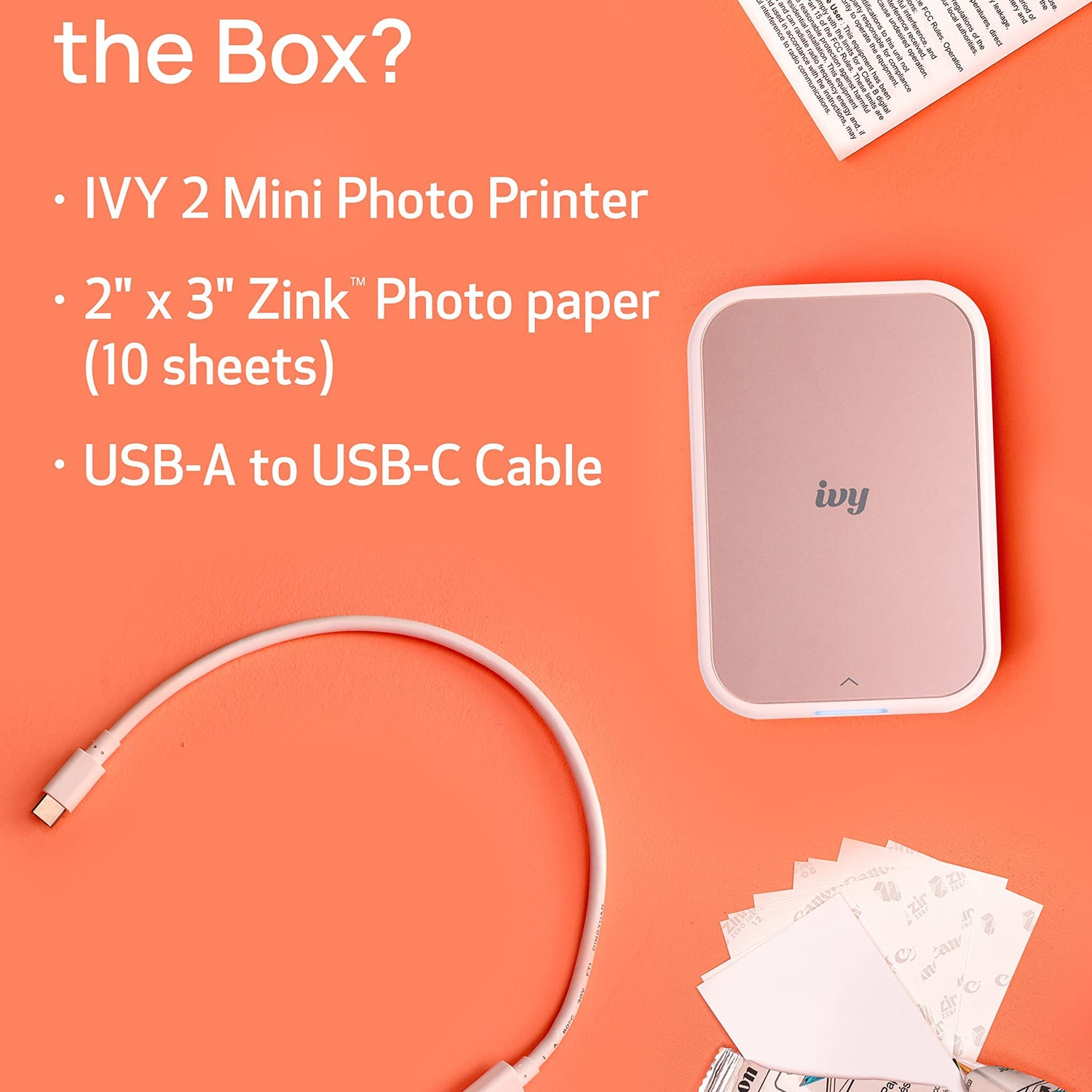 - NO INK NEEDED! The IVY 2 Mini Photo Printer uses ZINK (Zero Ink) technology, which features colorful dye-based crystals embedded inside the paper.