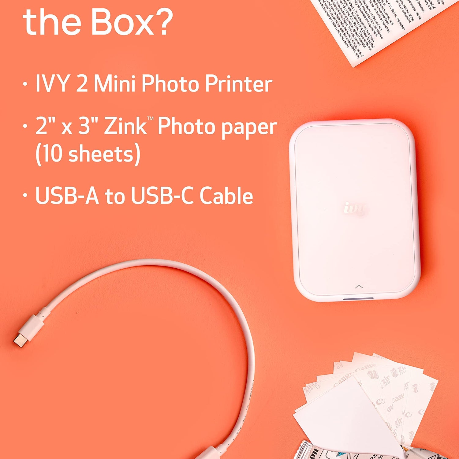 - No ink needed! The IVY 2 Mini Photo Printer uses ZINK (Zero Ink) technology, which features colorful dye-based crystals embedded inside the paper.