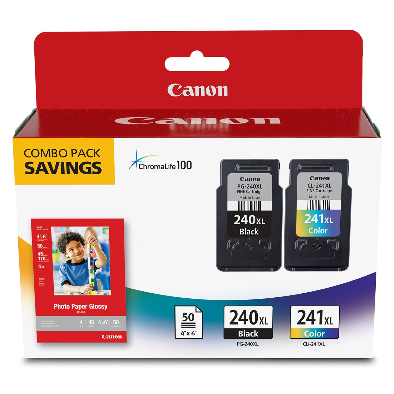 - Value pack of 2 cartridges and 50-sheet photo paper. PG-240 XL Black ink yields up to 300 pages, CL-241 XL color ink yields up to 400 pages.