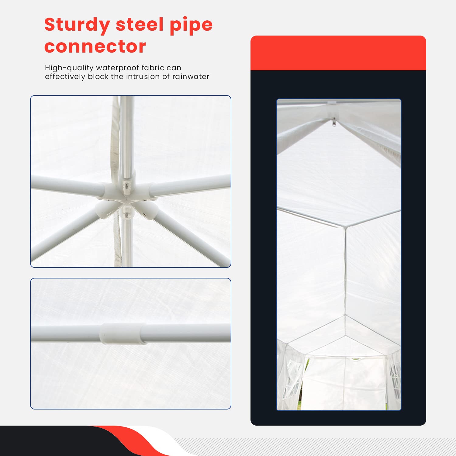 - 【Easy to Assemble】Party tents are easy to put together. It's more efficient to assemble it with two people. No extra tools are needed to assemble the party tent, just follow the installation instructions and tighten the steel pipe and lid as you assemble the tent.