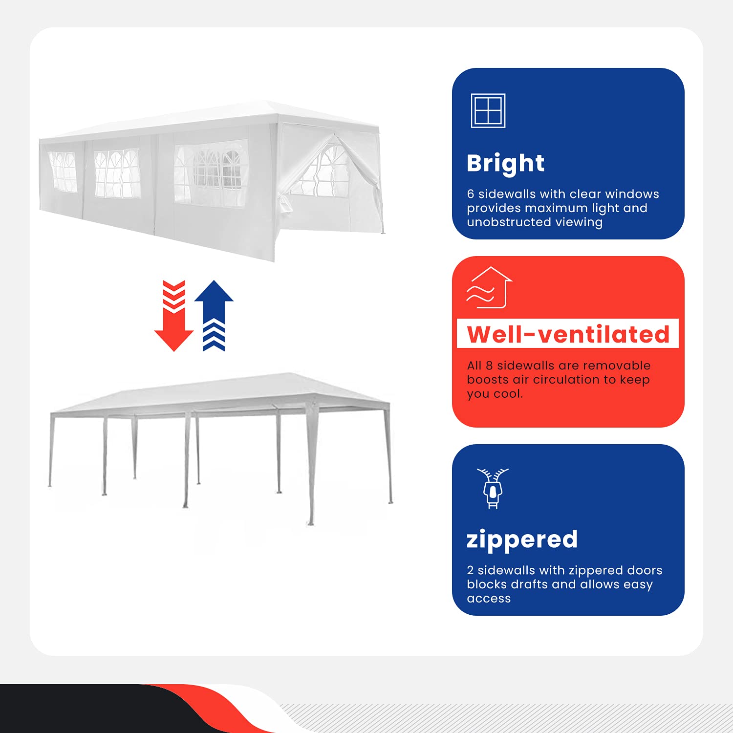 Canopy 10'x30' Party Tent Heavy Duty Outdoor Gazebo Wedding Party Tent with 8 Removable Sidewalls Waterproof UV Resistant for Wedding Camping Shelter BBQ,White