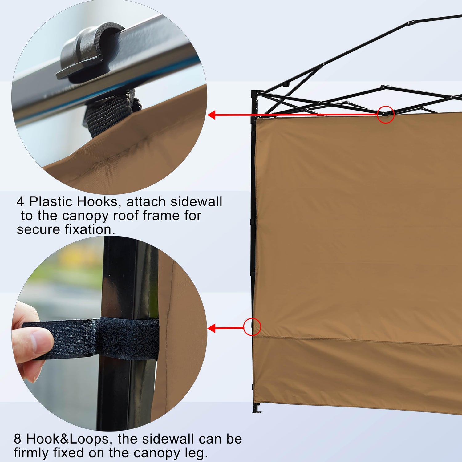 - Including 4 straps in each sidesof sidewall can be attached to the frame legs of canopy as a wall, Block hot sun that tends to beam in from one side of your gazebo.