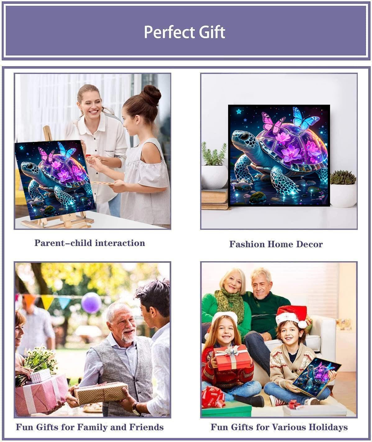 - 【Adults' Paint-by-Number Kits-Sea Turtle】Painting by numbers kits include Each package comes with 1* wooden easel,1* sets of 12x12"(30cm*30cm) framed paintings, 1* sets of acrylic paints, 2* brushes and 1* color postcard guide for reference.