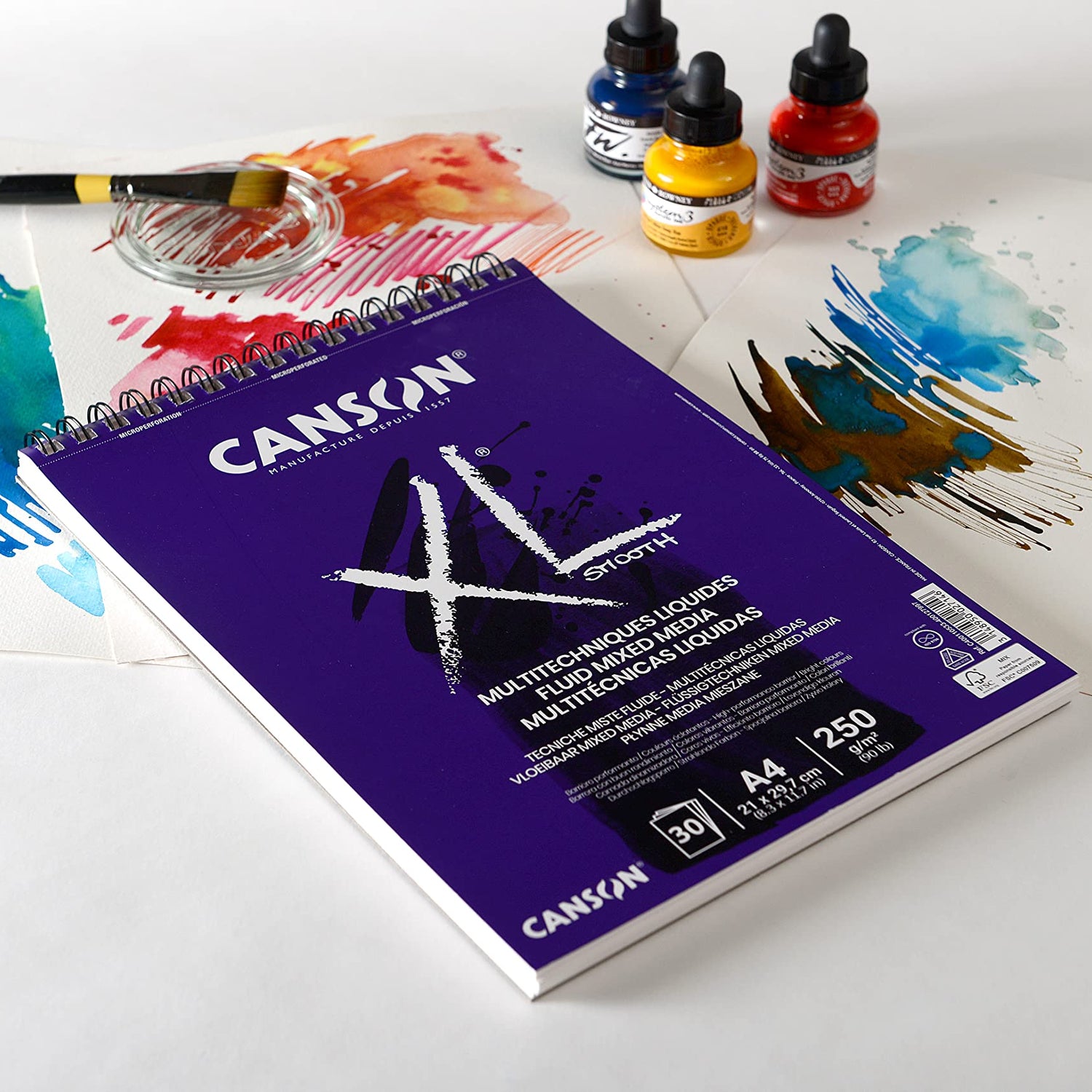 CANSON XL® Fluid Mixed Media Pad for Liquid Mixing Techniques, DIN A4, 30 Sheets, 250 g/m2