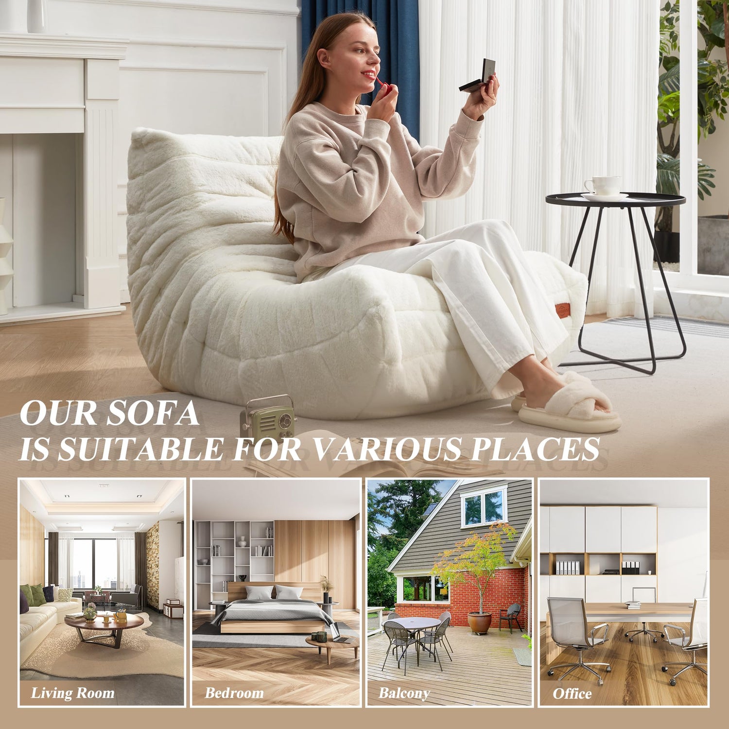 Cansunna Bean Bag Chair Big Sofa Beanbag Chair for Adults Fireside Chair Bean Bag Lounger with Memory Foam Filled for Home,Apartment or Gaming Venue (White Plush)