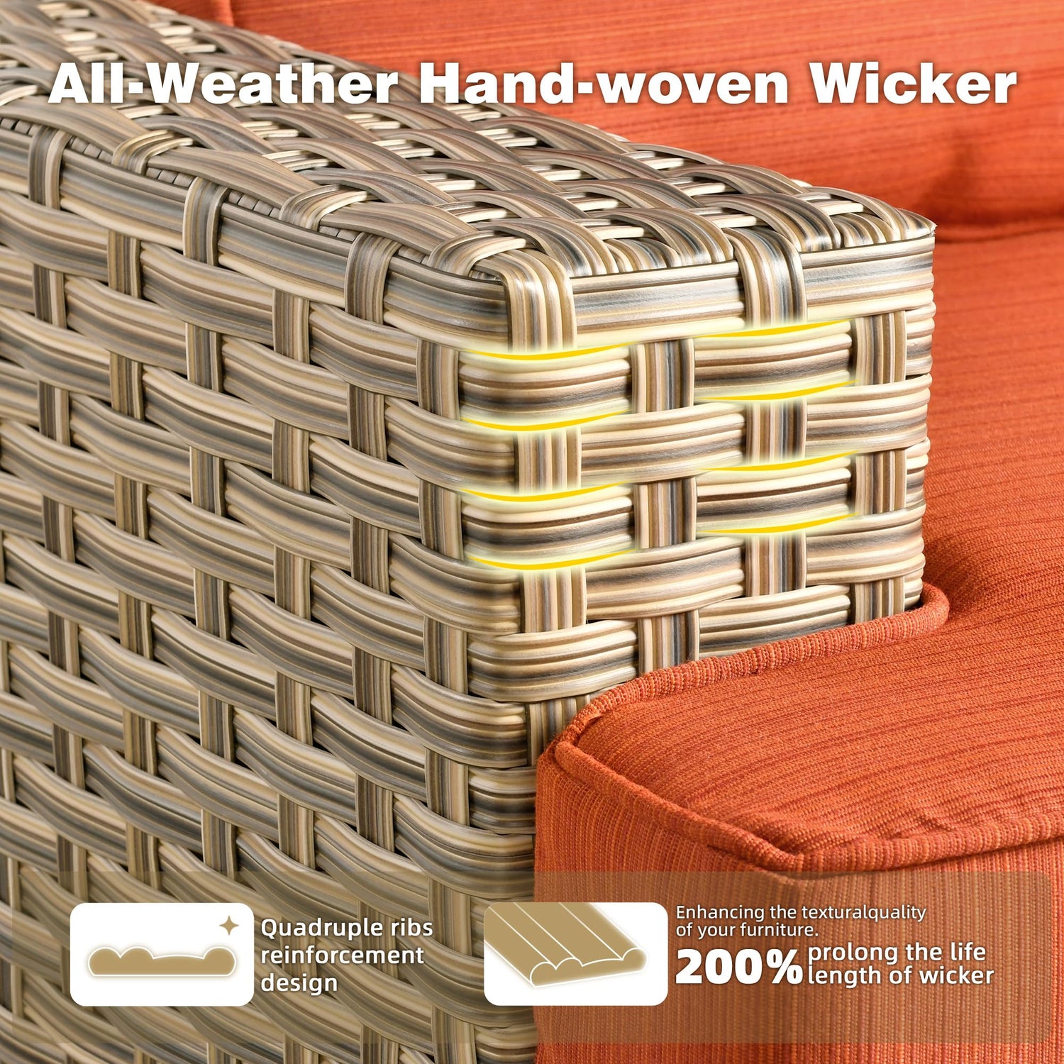 - Weatherproof Long-Lasting Construction: Premium anti-aging thick PE wicker rattan and complete weather protection. 3D-reinforced widened frame delivers exceptional durability with 2X lifespan of conventional sets