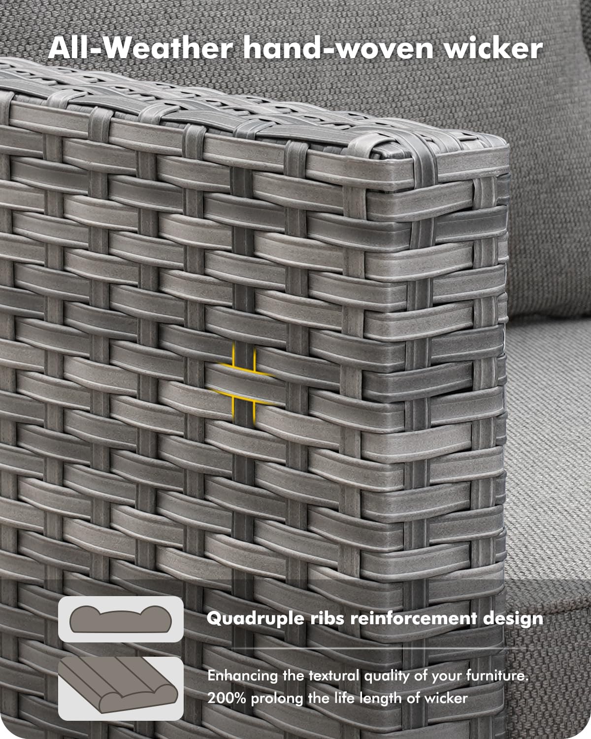 - Durable All-Weather Construction: Crafted from high-quality, handwoven weather-resistant PE rattan, this outdoor patio furniture is designed to resist fading and dry cracking. The steel frame undergoes an E-Coating & Powder-Coating process, ensuring the outdoor seating remains resistant to sagging, rust, and the effects of aging.