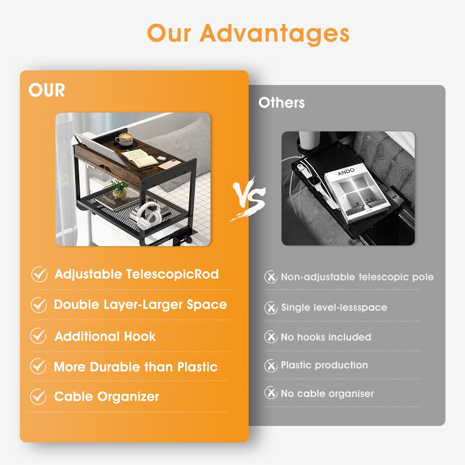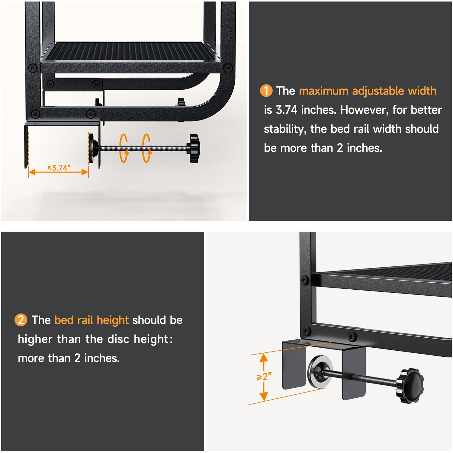 - 💕Easy Installation & 24 Customer Service - You can assemble the bedside shelf less than 10 minutes. Once assembled, simply hang the bed side table tray organizer onto the frame and rotate two clamps until the bedside shelf is securely in place. We take your shopping experience seriously. Each product undergoes rigorous quality checks before shipping to ensure they are in great condition. Please feel free to contact us If you encounter any issues.