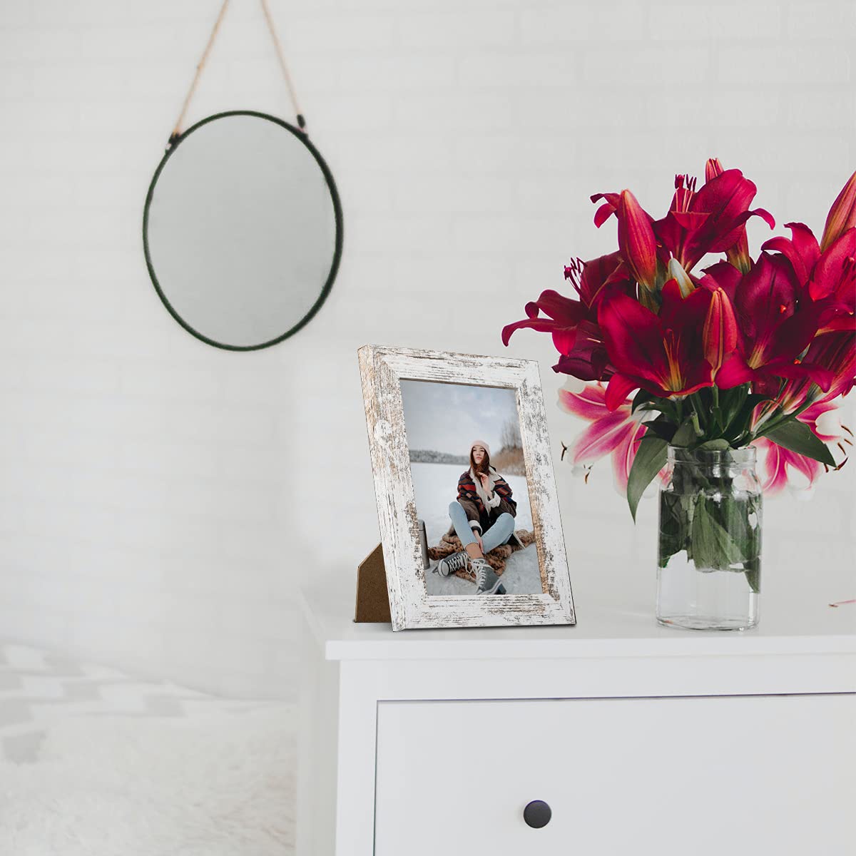- 【High Quality Material】:5x7 picture frame is made of solid MDF wood with distressed white grain,and is painted with eco-friendly paint.5x7 frame comes with high definition real glass that gives a clear view of your picture,much better to protect your favorite photos from scratch,and keep your photos looking great for years.